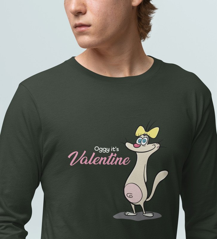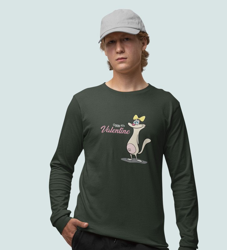 Cats Love Valentines: Attractive Printed (green) Full Sleeve T-Shirt For Singles