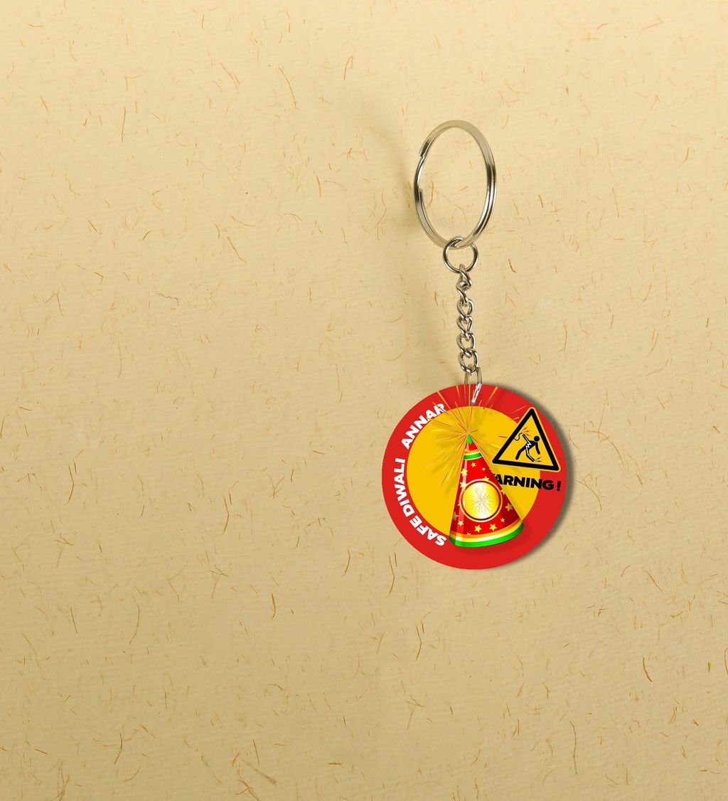 "Celebrate the Festival of Lights with the Pataka Keychain - Printed Round Keychain Pack of 2"
