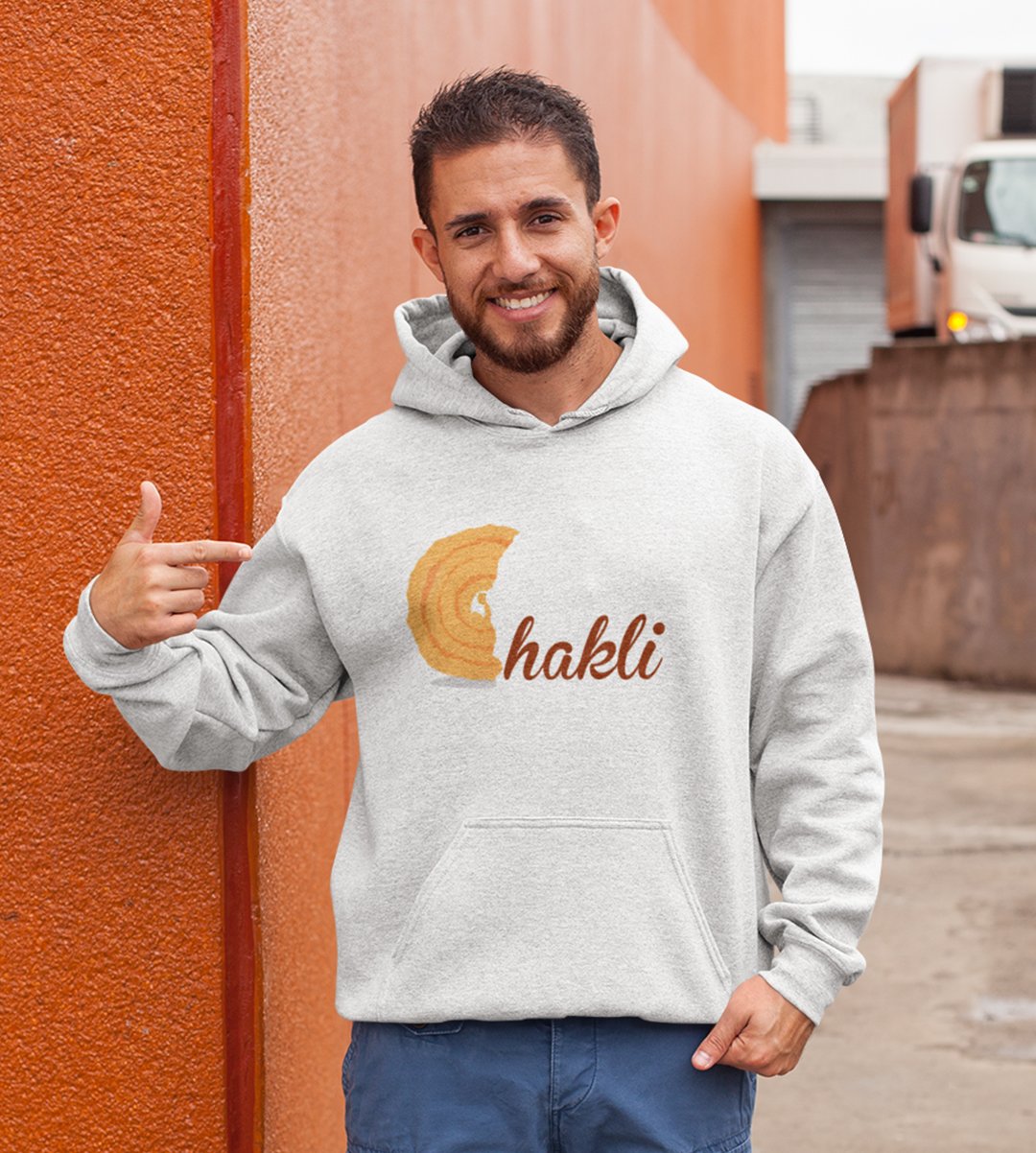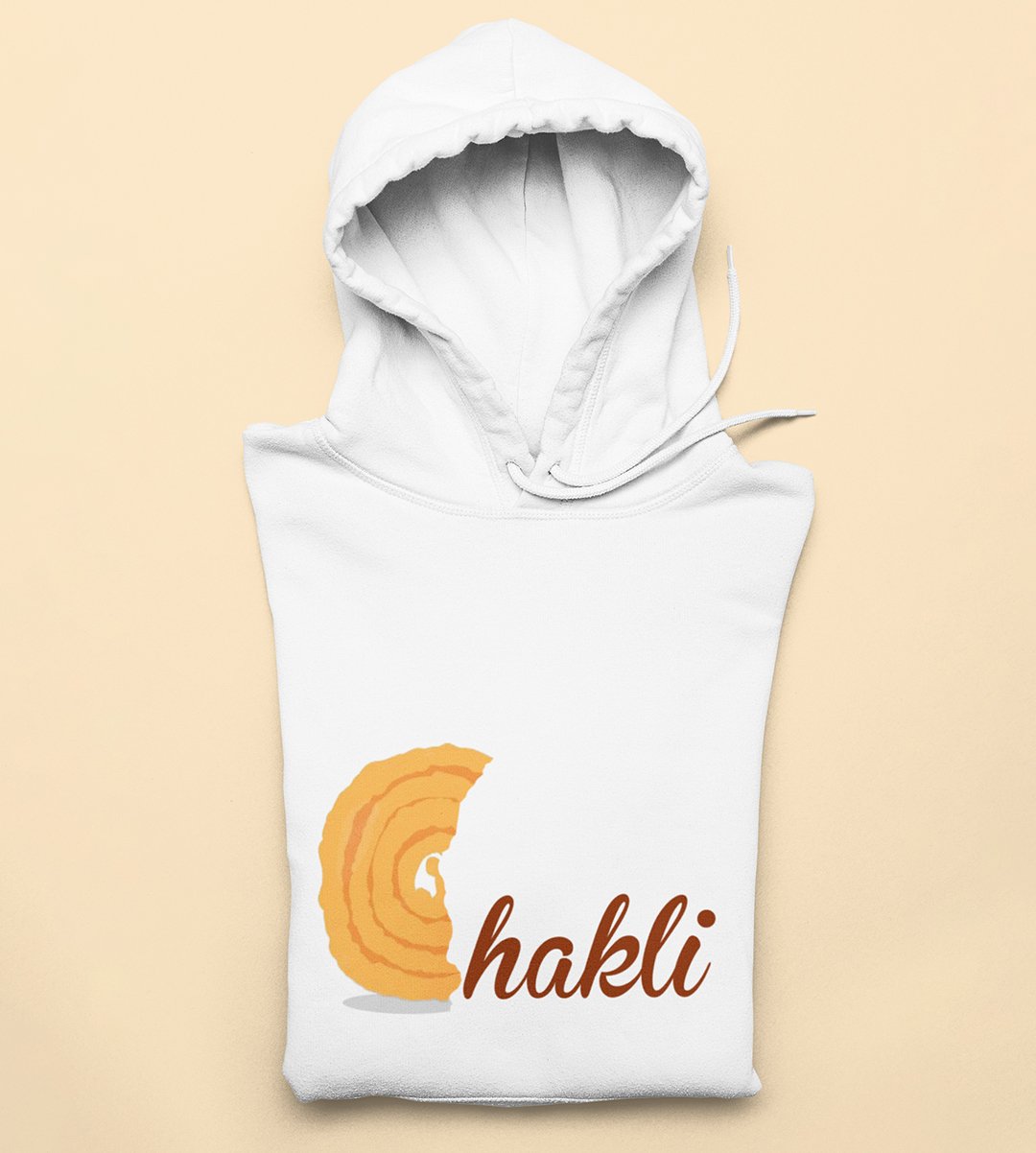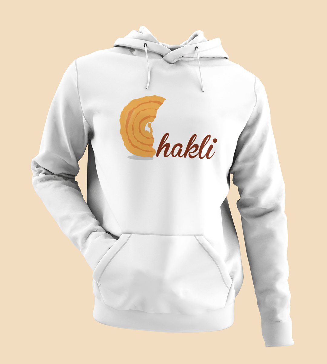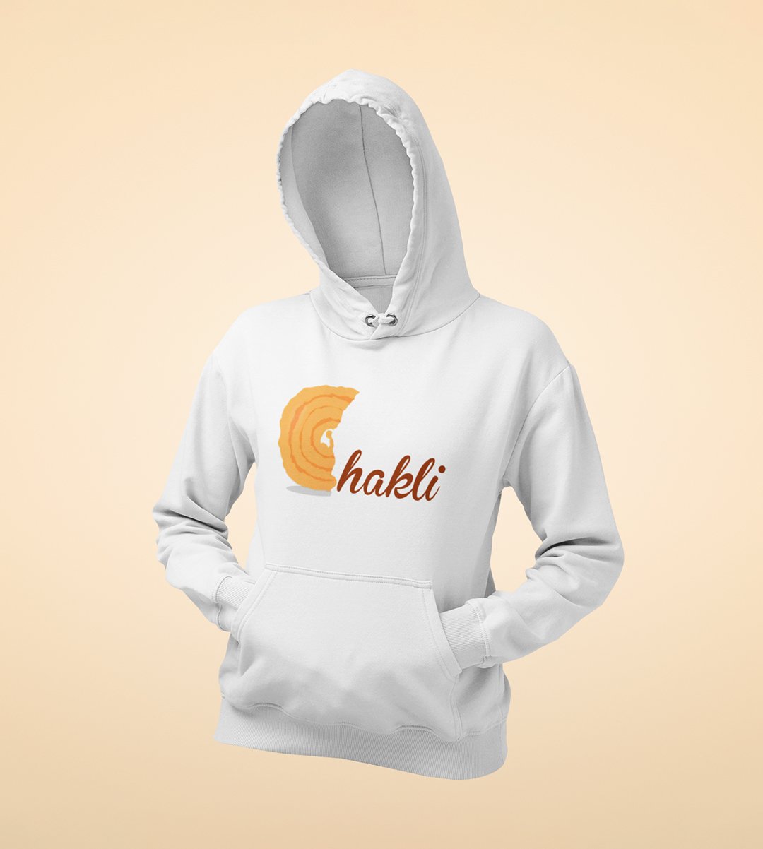 Chakli text printed diwali themed White Hoodie specially for diwali festival