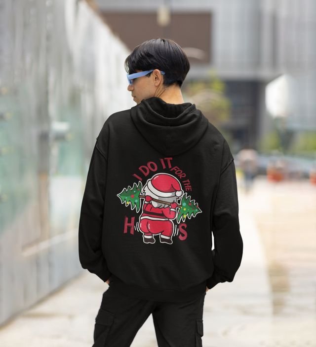 Cheerful I Do It Design Bringing Humor to Christmas Festivities Printed Black Cotton Hoodie