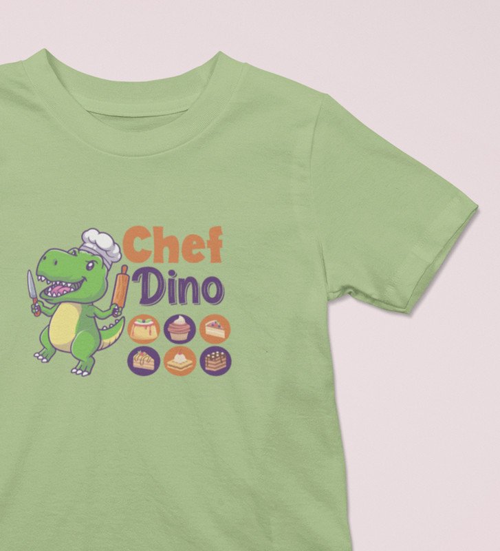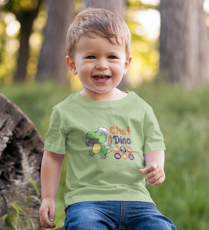Chef Dino, Printed Cotton T-shirt (olive green) for Boys