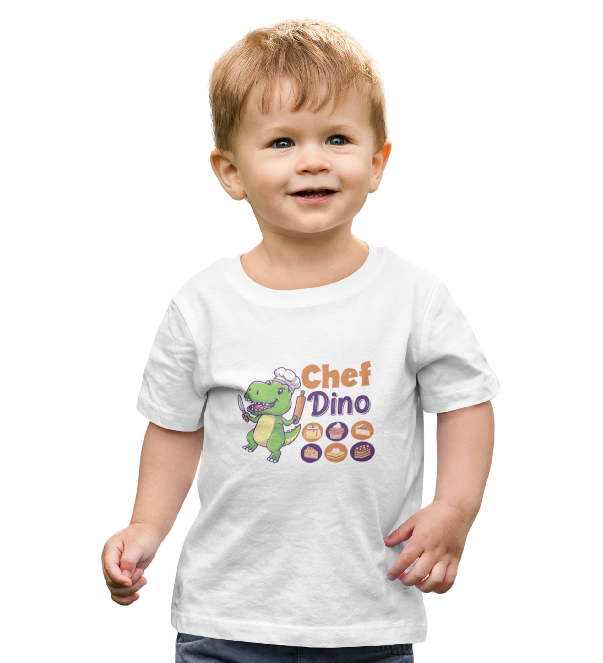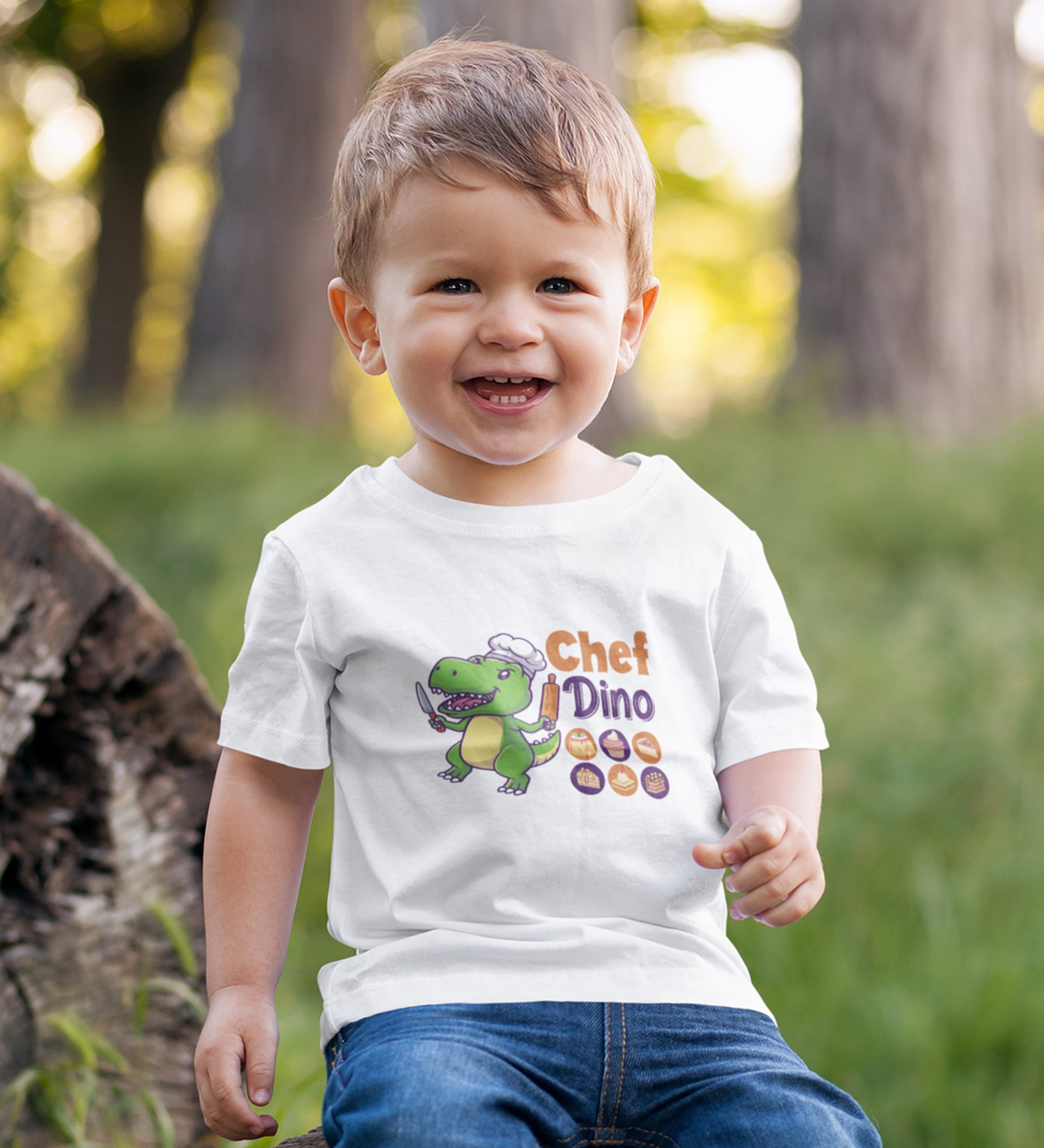 Chef Dino, Printed Cotton Tshirt (White) for Boys
