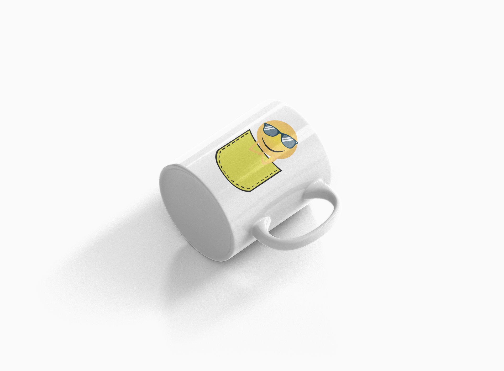 Chilling Emoji Inside the Pocket- emoji printed ceramic white coffee and tea mugs/ cups for emoji lover people