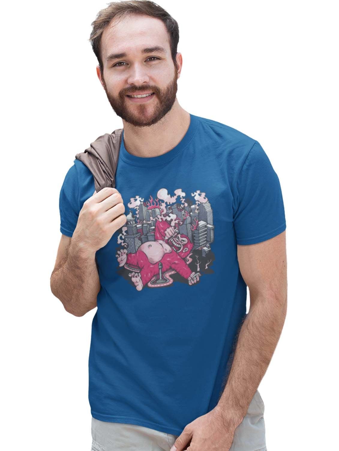 Revenge Blue Round Neck Cotton Half Sleeved T-Shirt with Printed Graphics