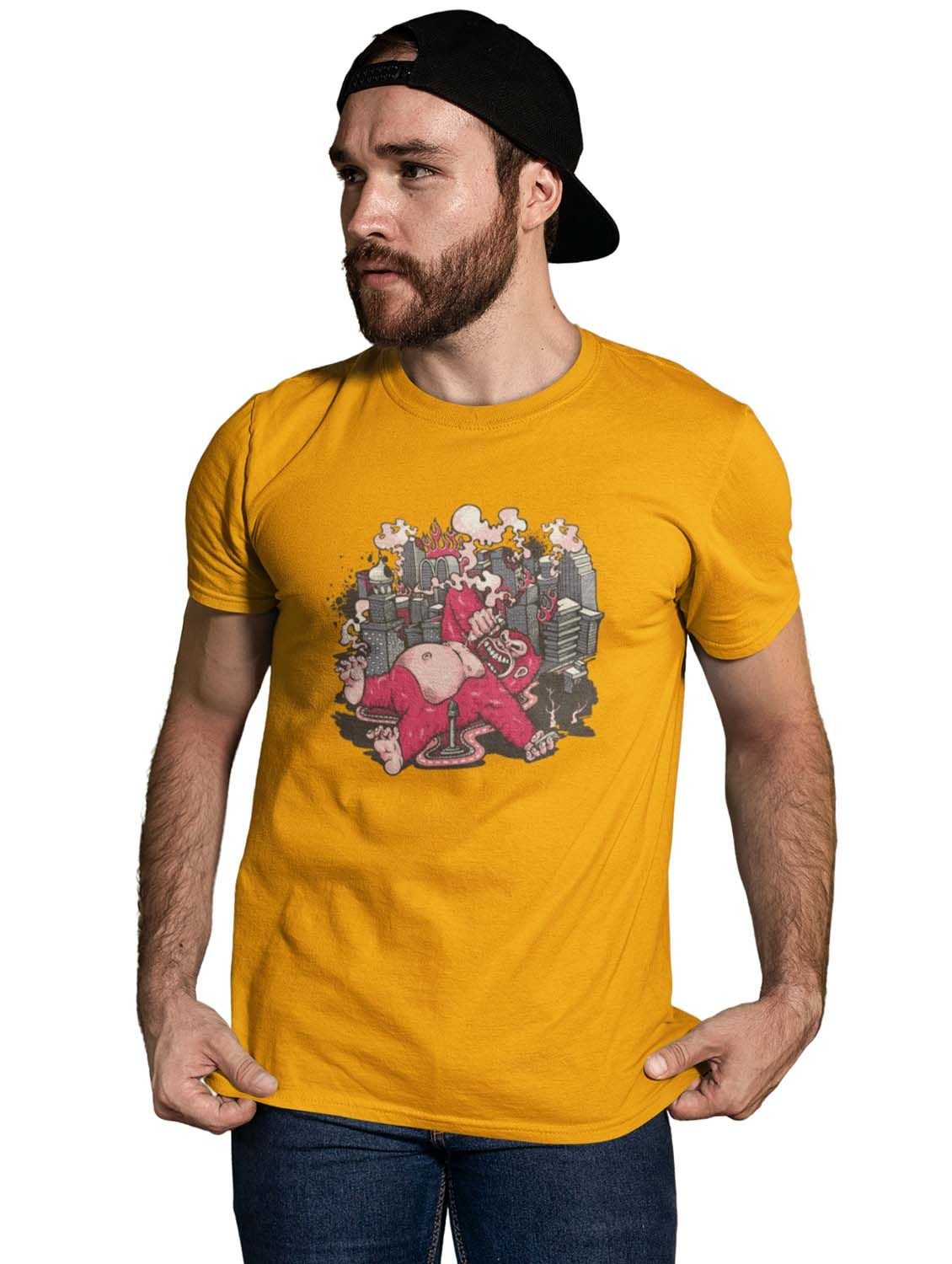 The Wrecker Yellow Round Neck Cotton Half Sleeved T-Shirt with Printed Graphics