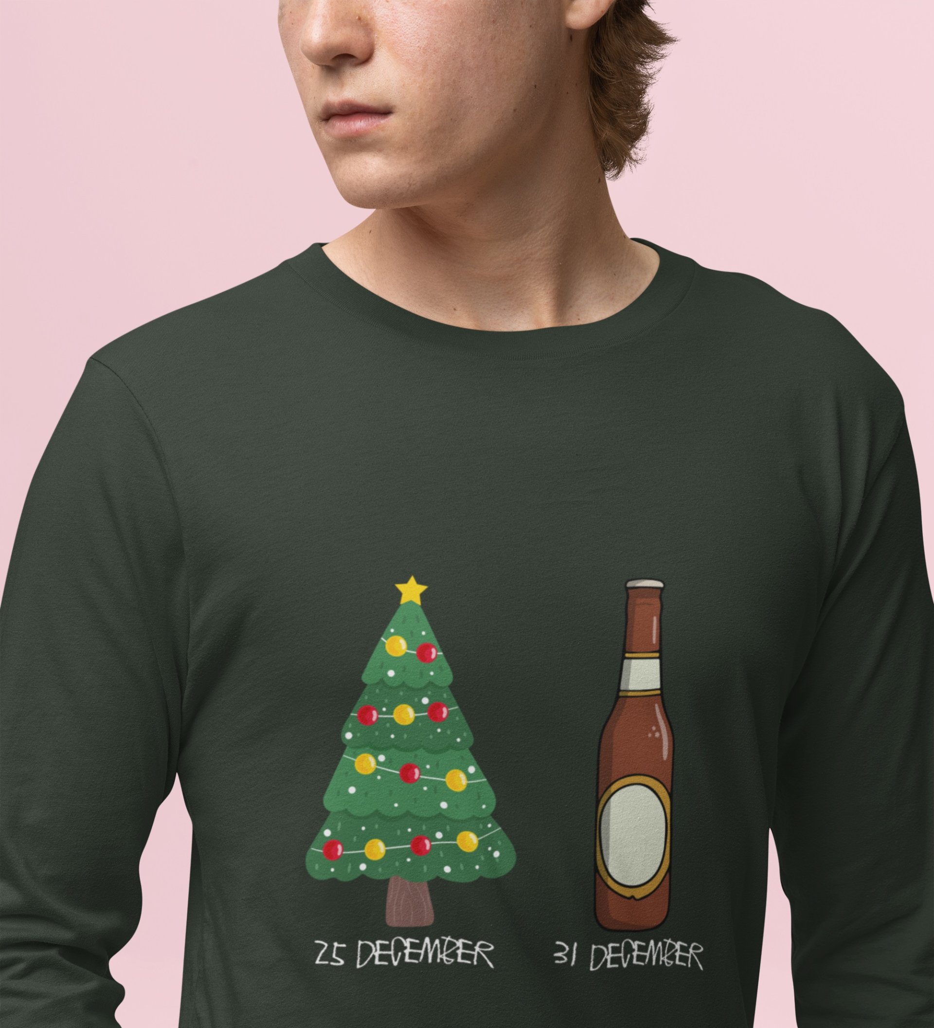 Christmas Cheer Later Chilled Beer: Humorously DesignedFull Sleeve T-shirt Green Perfect Gift For Secret Santa