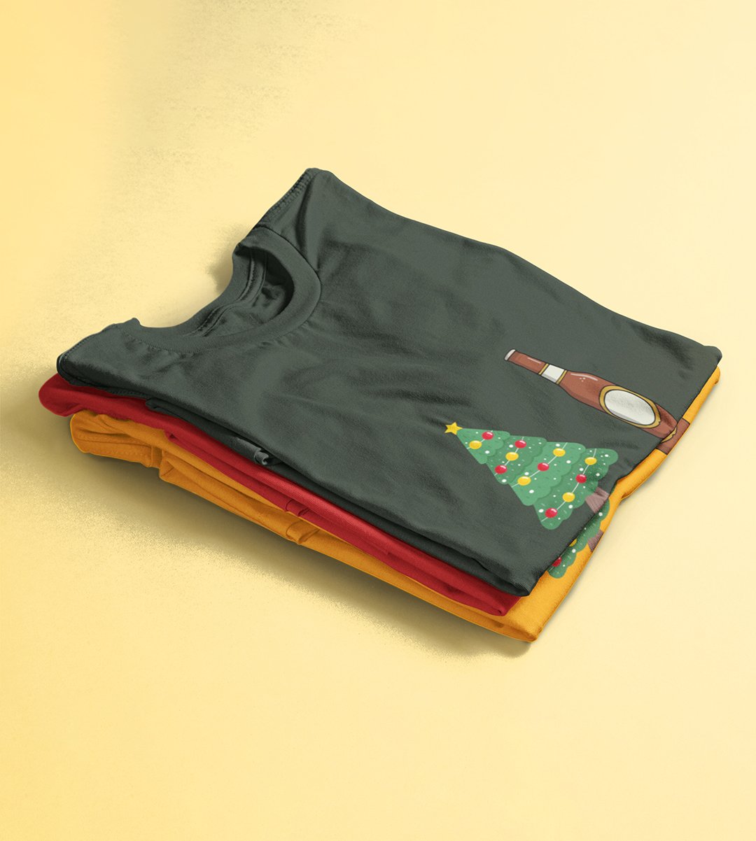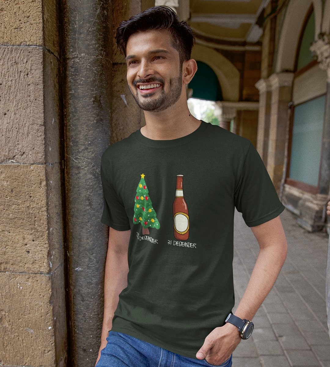 Christmas Cheer Later Chilled Beer: Humorously Printed T-shirt (Green) Perfect Gift For Secret Santa