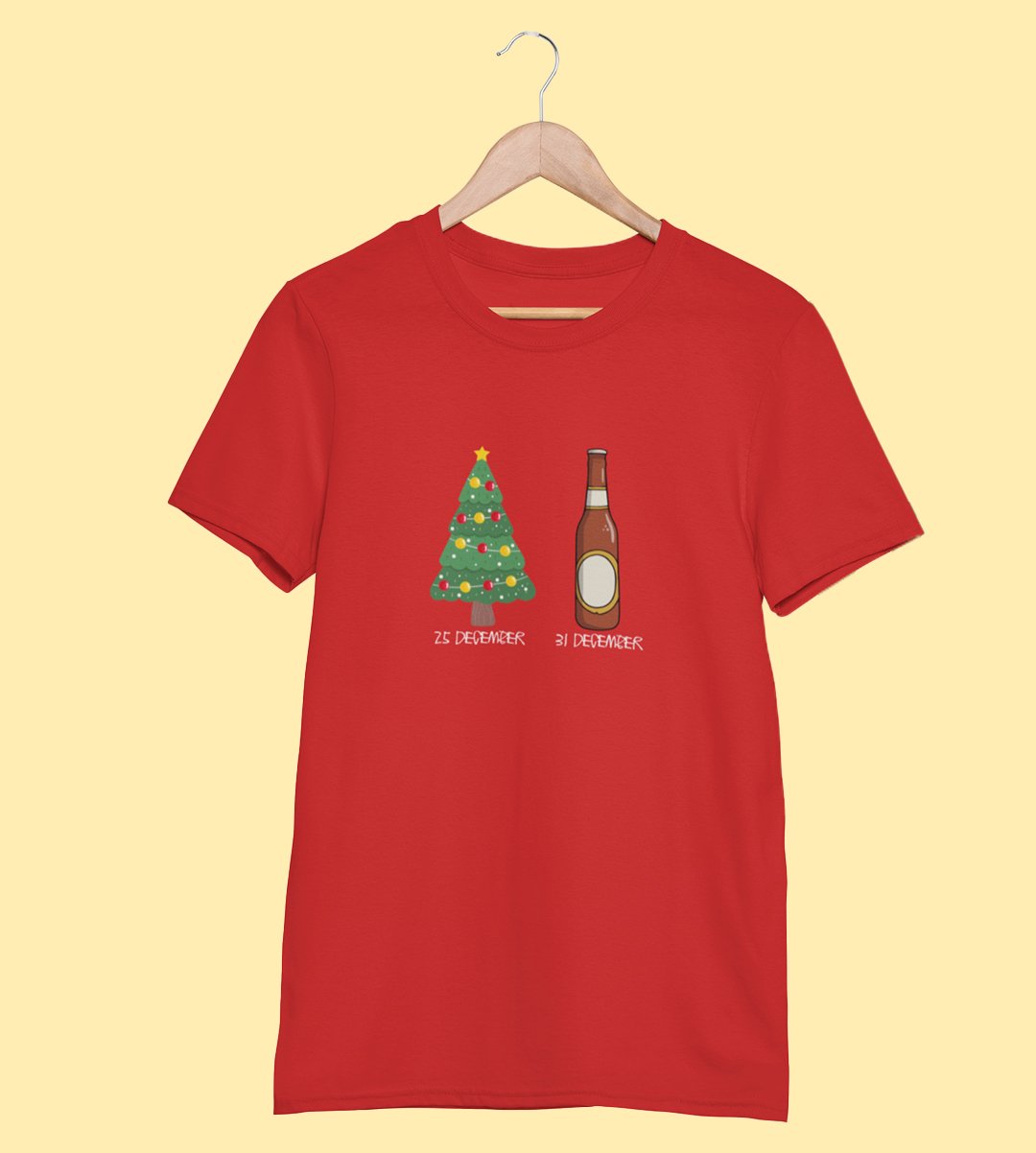 Christmas Cheer Later Chilled Beer: Humorously Printed T-shirt (Red) Perfect Gift For Secret Santa