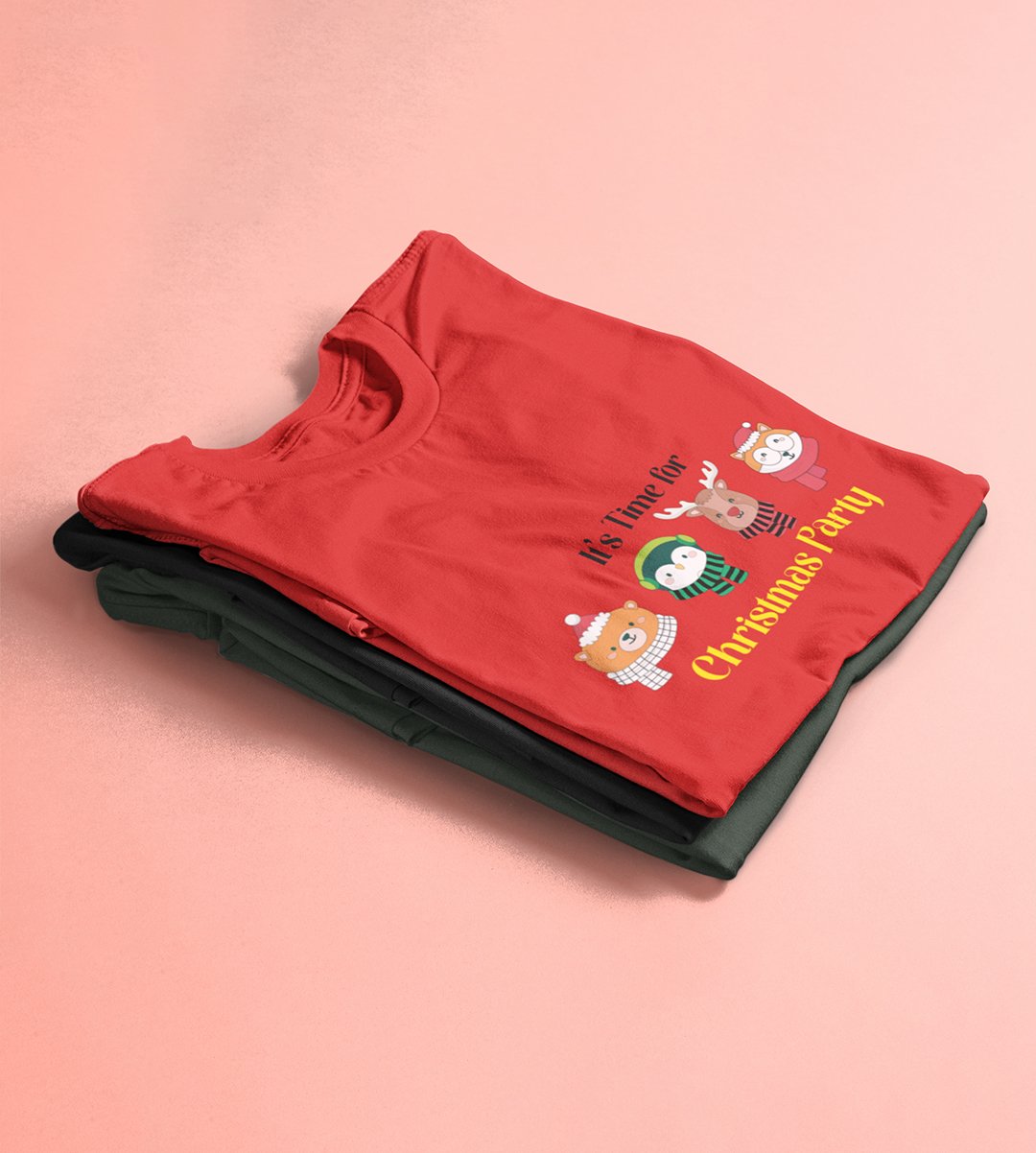 Christmas Party: Motivational Printed T-shirt (Red) Unique Gift For Secret Santa