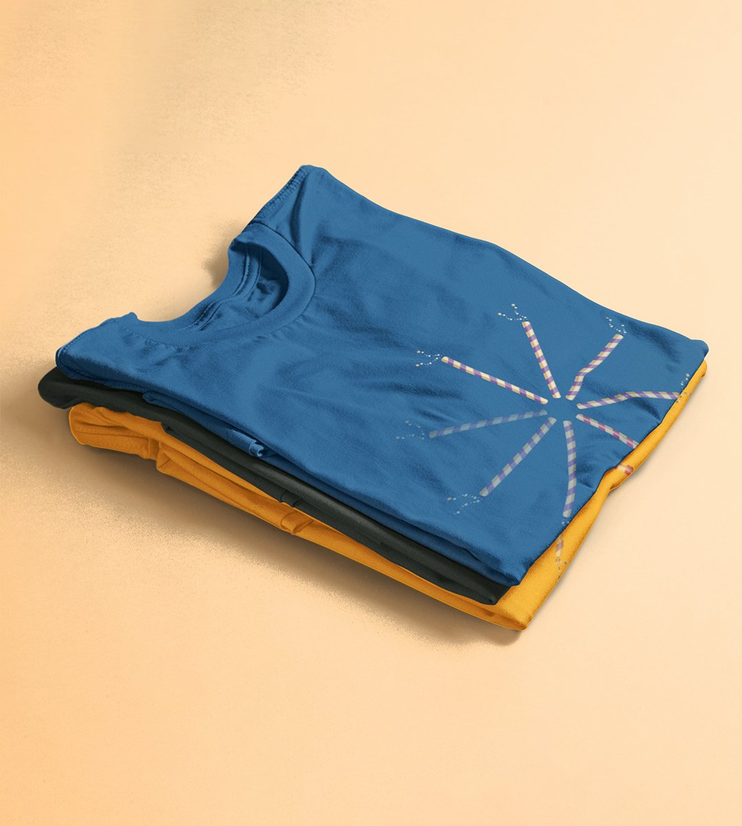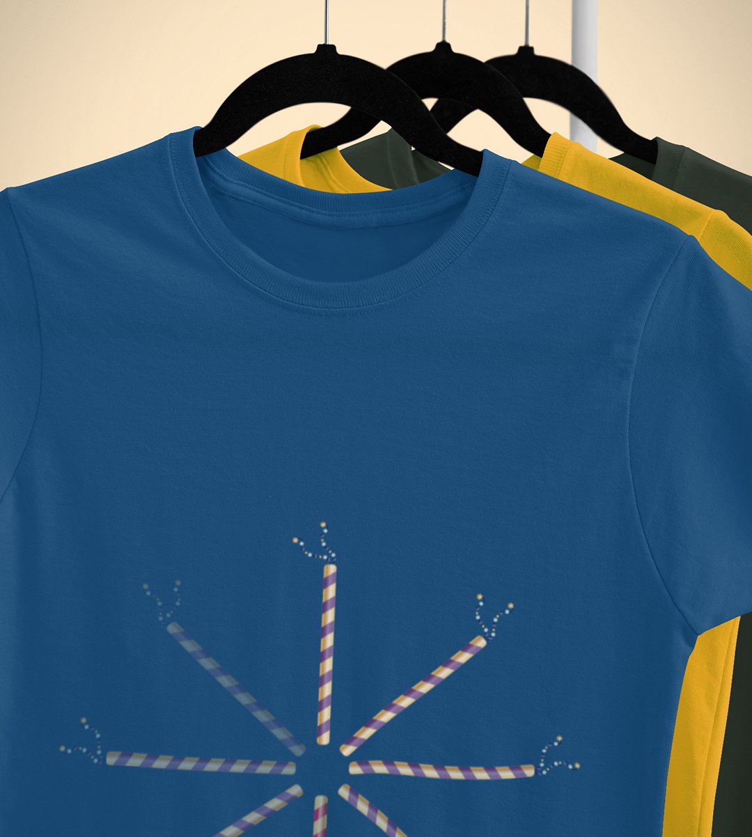 Circle based dandiyas together printed unisex adults round neck cotton half-sleeve blue tshirt specially for Navratri festival/ Durga puja