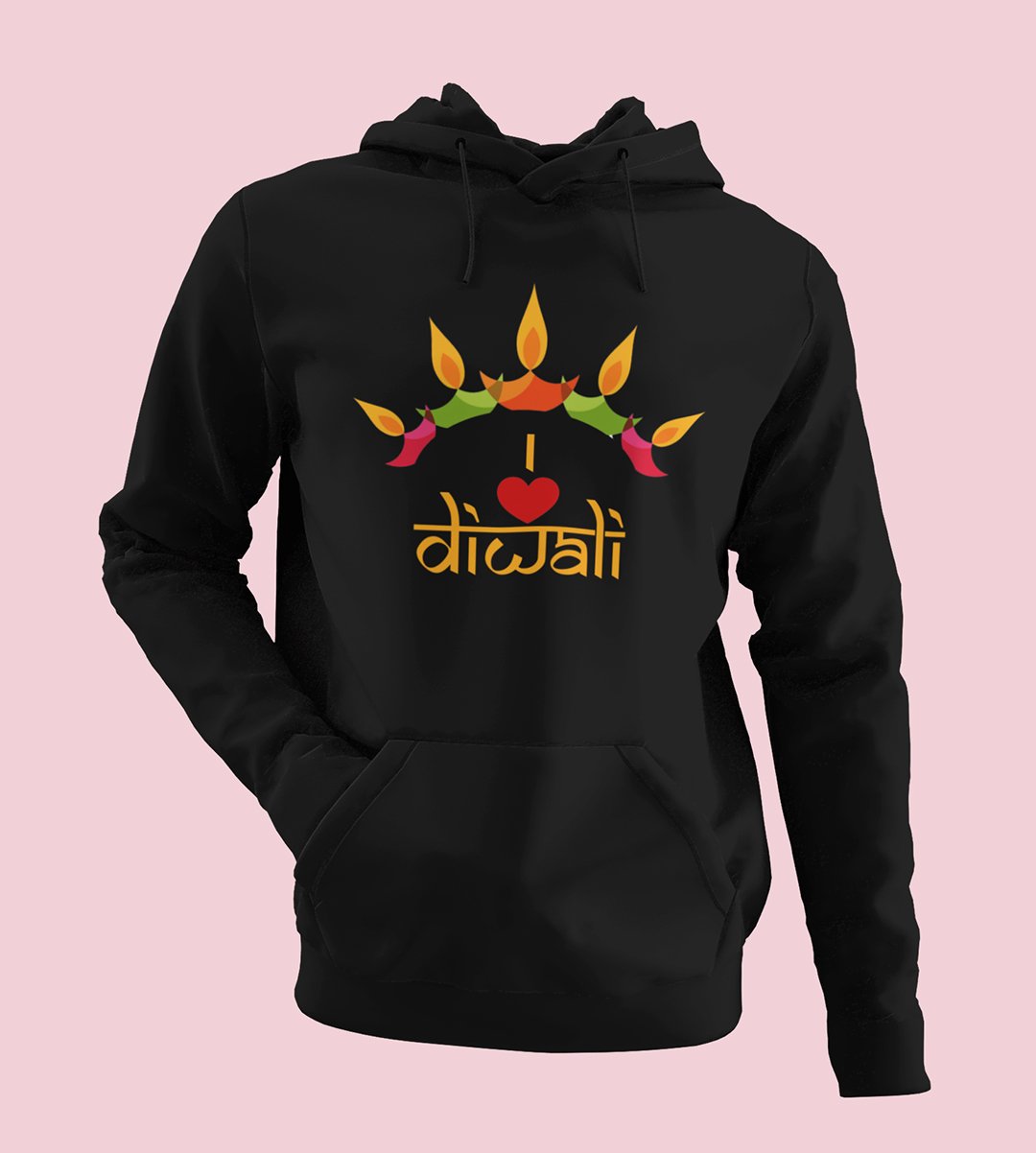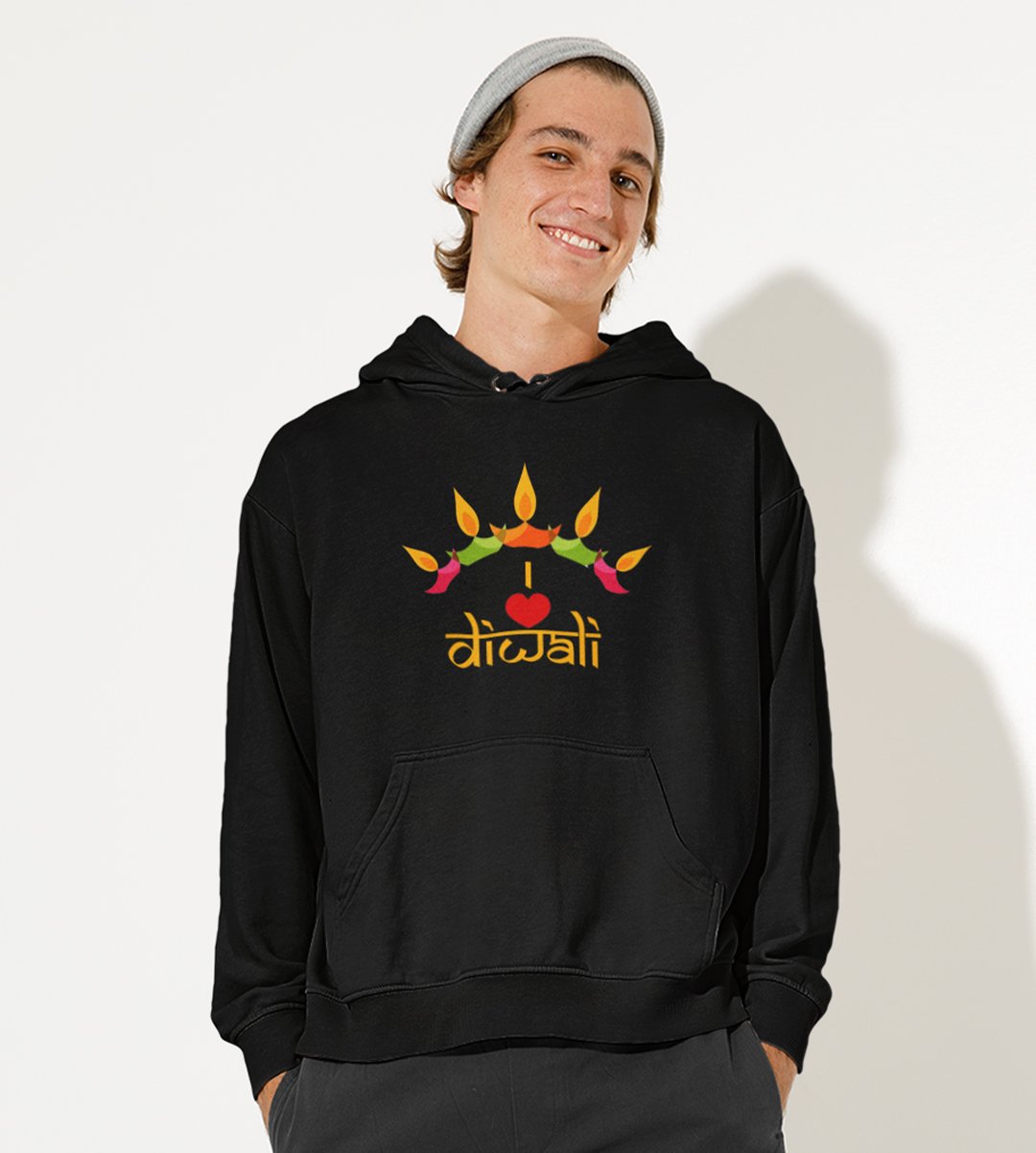 Express your love for the Festival of Lights with our "I Love Diwali" black Hoodie . This heartwarming design reflects your deep affection for the festivities, illuminating your moments with the spirit of Diwali. Sip, celebrate, and share the joy of this cherished festival.