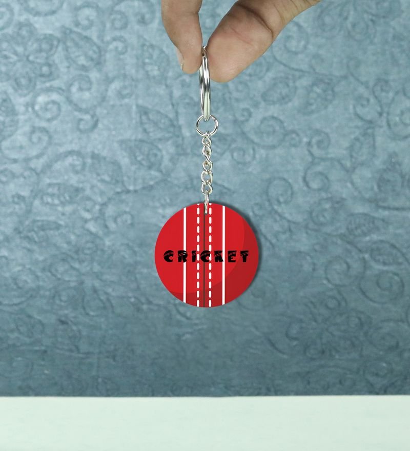 Classic Red Cricket Ball Printed Round Keychain Pack of 2