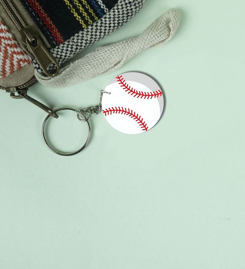 Add a sporty touch to your style with this Pack of 2 Printed Round Keychains. Featuring bold designs inspired by shot put, ping pong, baseball, and volleyball, they