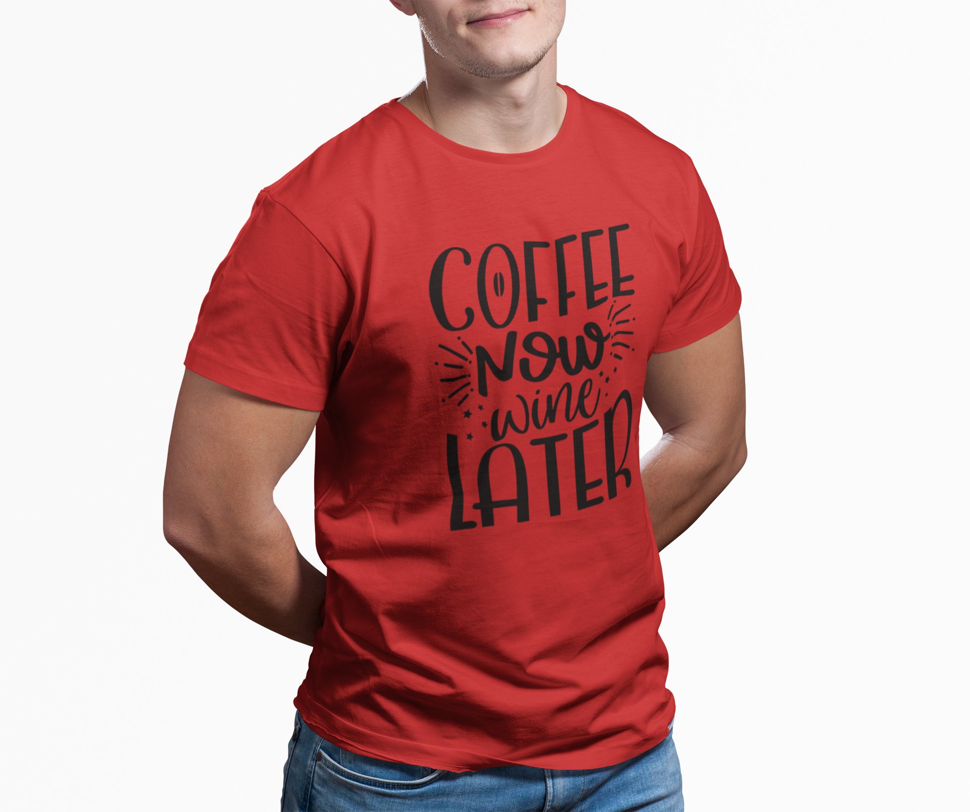 Coffee now wine later - Red - printed t shirt - comfortable round neck cotton.