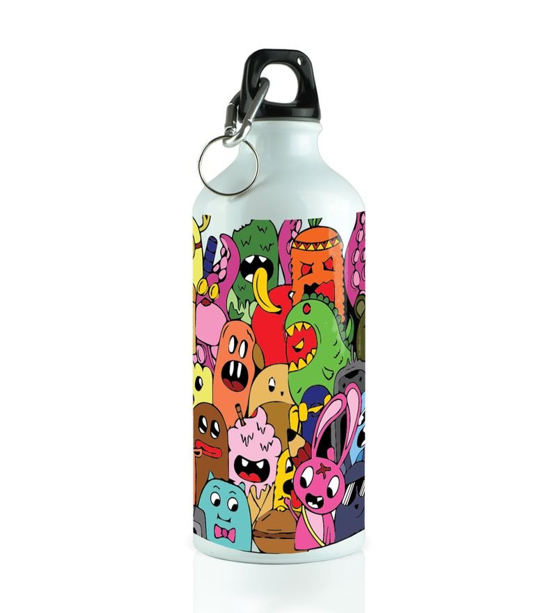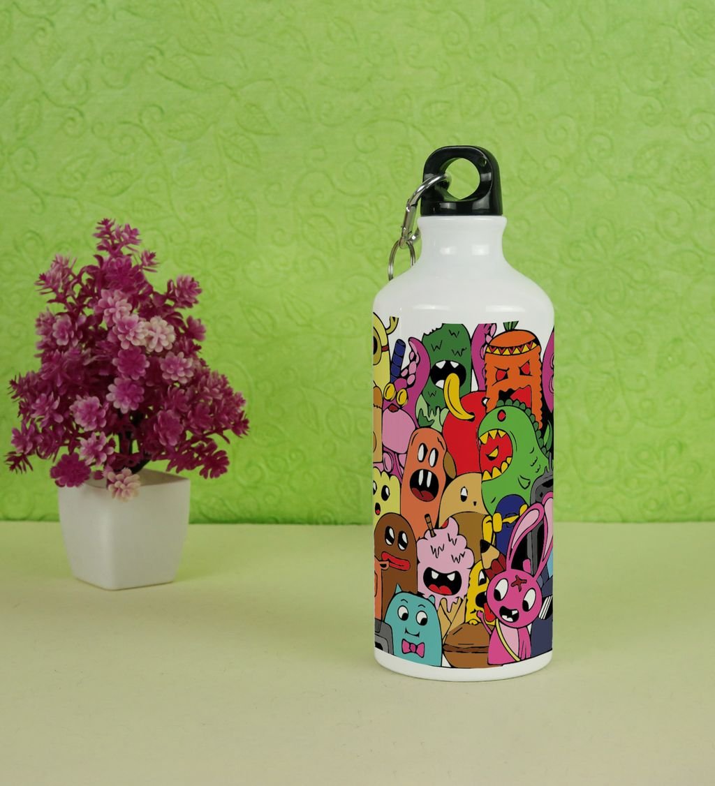 Colorful Shinie Eyes Creatures Doodles Printed Aluminium Water Bottle 600ml