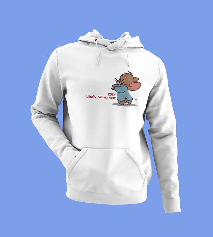 Come Faster 2024, White Printed Hoodies For Mens On New Year Theme