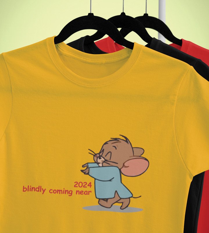 Come Faster 2024 Yellow Printed T-shirt For Mens On New Year Theme