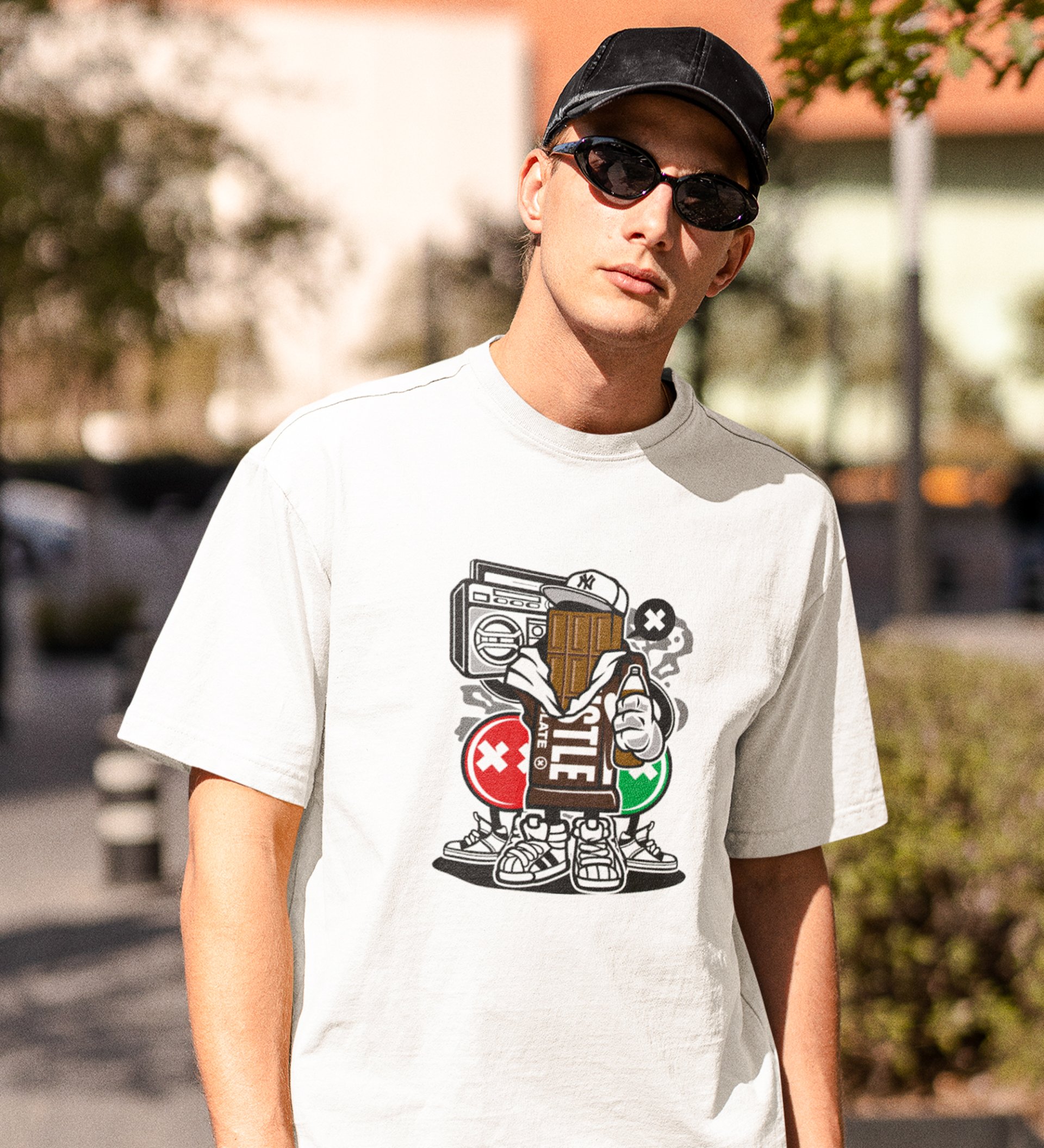 Cool Chocolate White Round Neck Cotton Half Sleeved Men's T-Shirt with Printed Graphics
