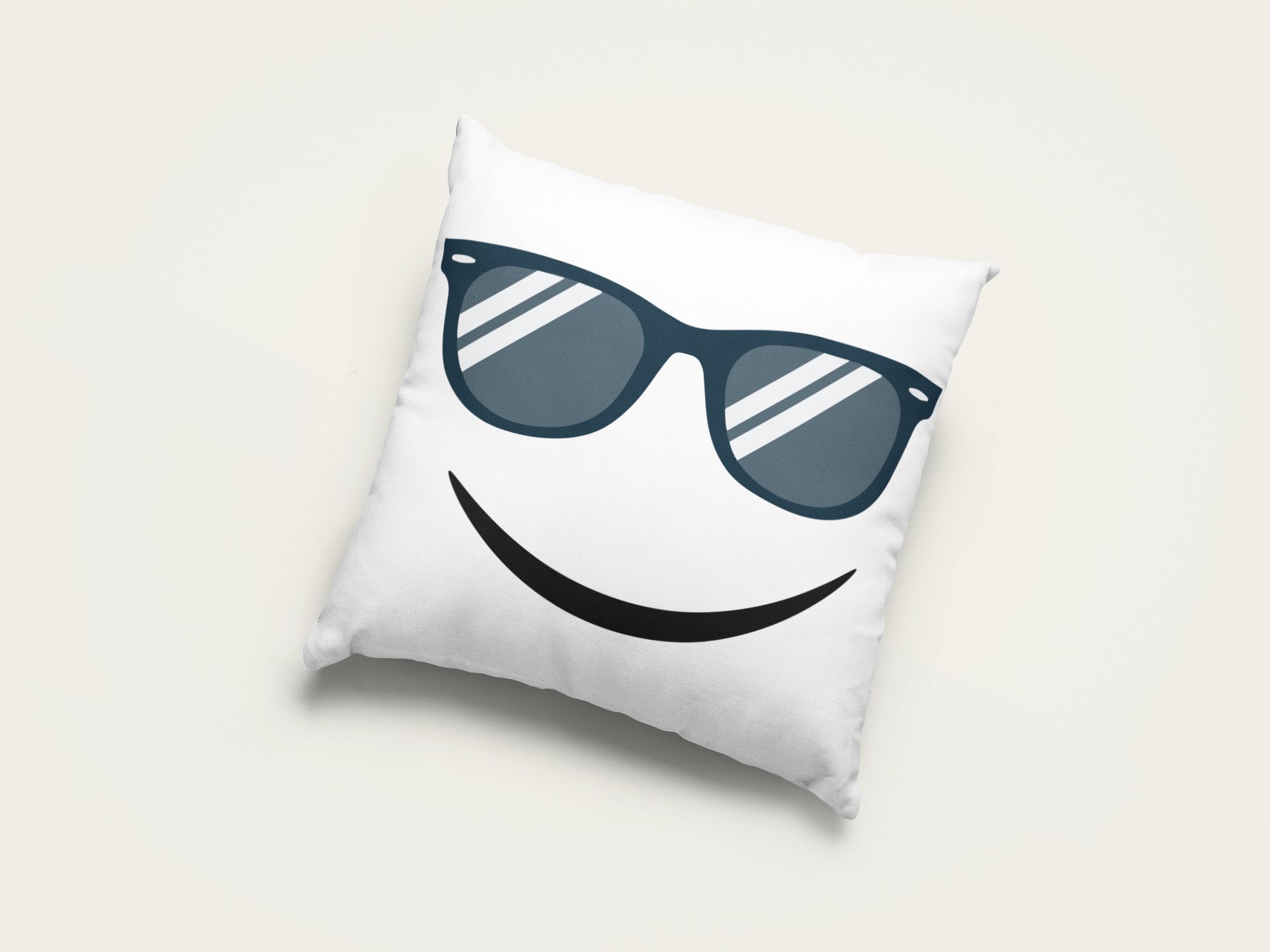 Cool Glasses, Frecky Smile Emoji - Emoji Printed Pillow Covers For Emoji Lovers(Pack Of Two)
