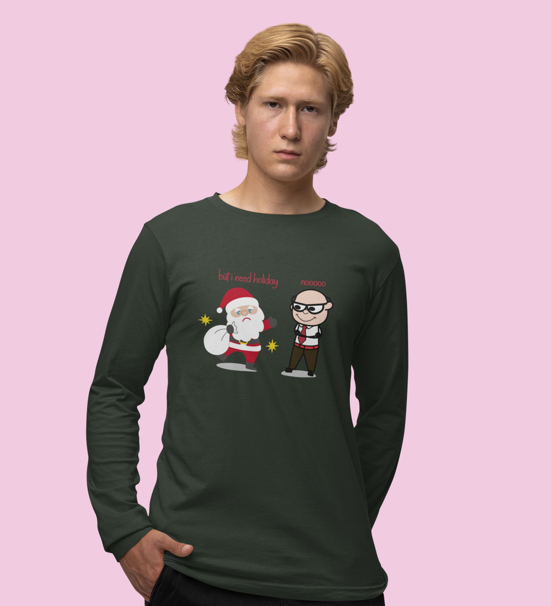 Corporate Santa: Funny DesignedFull Sleeve T-shirt Green Best Gift For Secret Santa