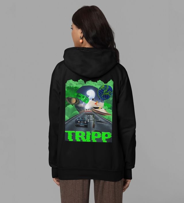 Cosmic Vibes Tripp Black Cotton Printed Hoodies For Women