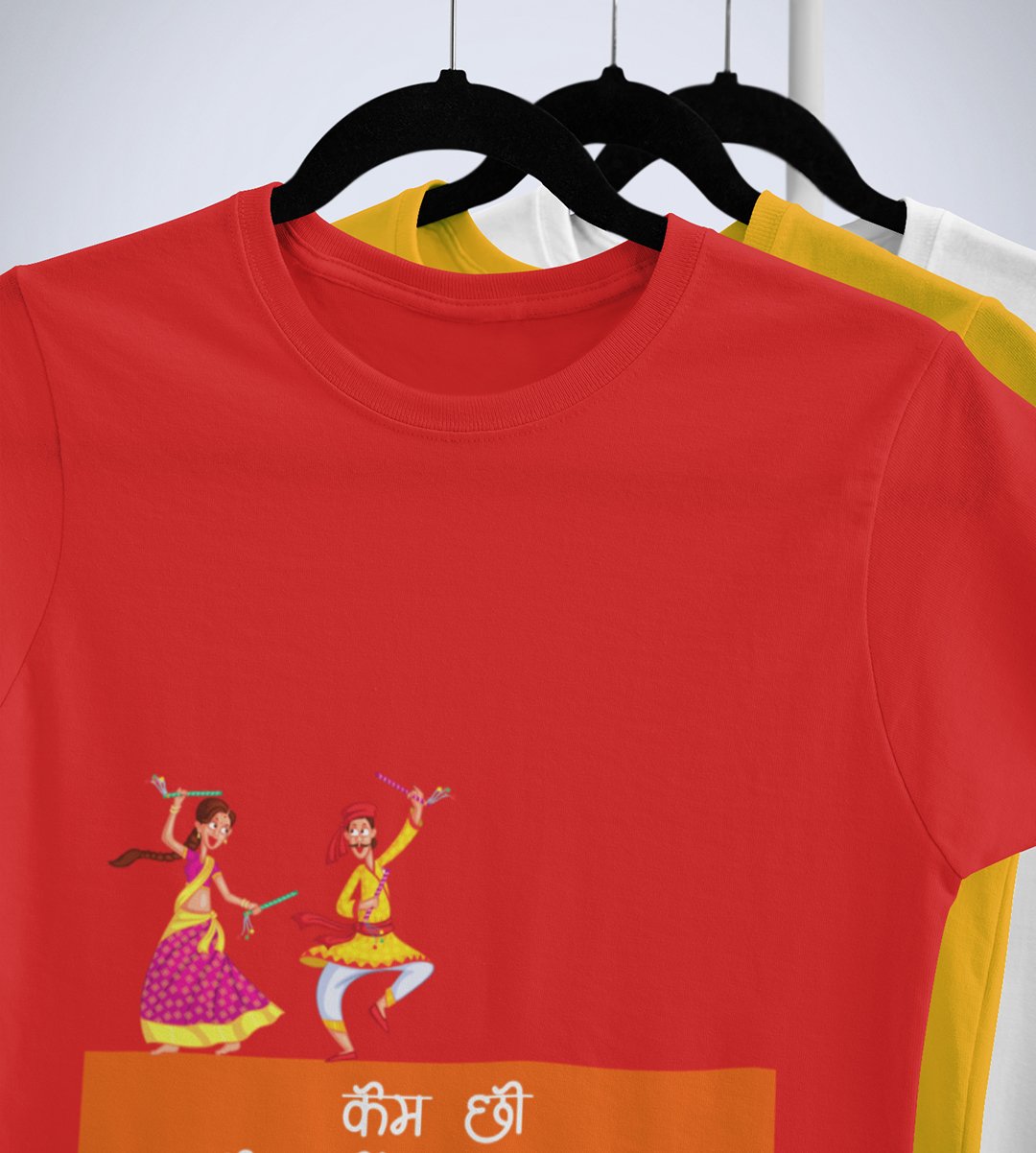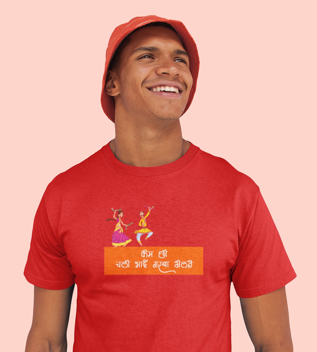 Navratri is a very auspicious festival for hindus. It takes place at the beginning of October and sometimes September. Enjoy the 9 days of festivities with full zeal and make yourself submerged in the love of Maa Durga. Navratri is also known as Durga Puja. And with this Tees, you can shine like a star during this festive season with our navratri themed cotton half sleeved Tshirts. You can pair our t-shirts with trousers and denim of your choice and make it a weekday smart casual or weekend wear. This is durable. This tshirt is smooth and soft which makes you comfortable to wear during all seasons. The printing in it is durable and odourless. It has five sizes, S,M,L,XL,XXL. The Tshirt colour is intact even after repeated washes. It can be kept in your wardrobe and hangers. Please avoid washing mashine to clean this Tee, it may affect the print. Hand wash only. We have brought you many navratri related designs printed on our different colour Tshirts to choose from. Grab it now.