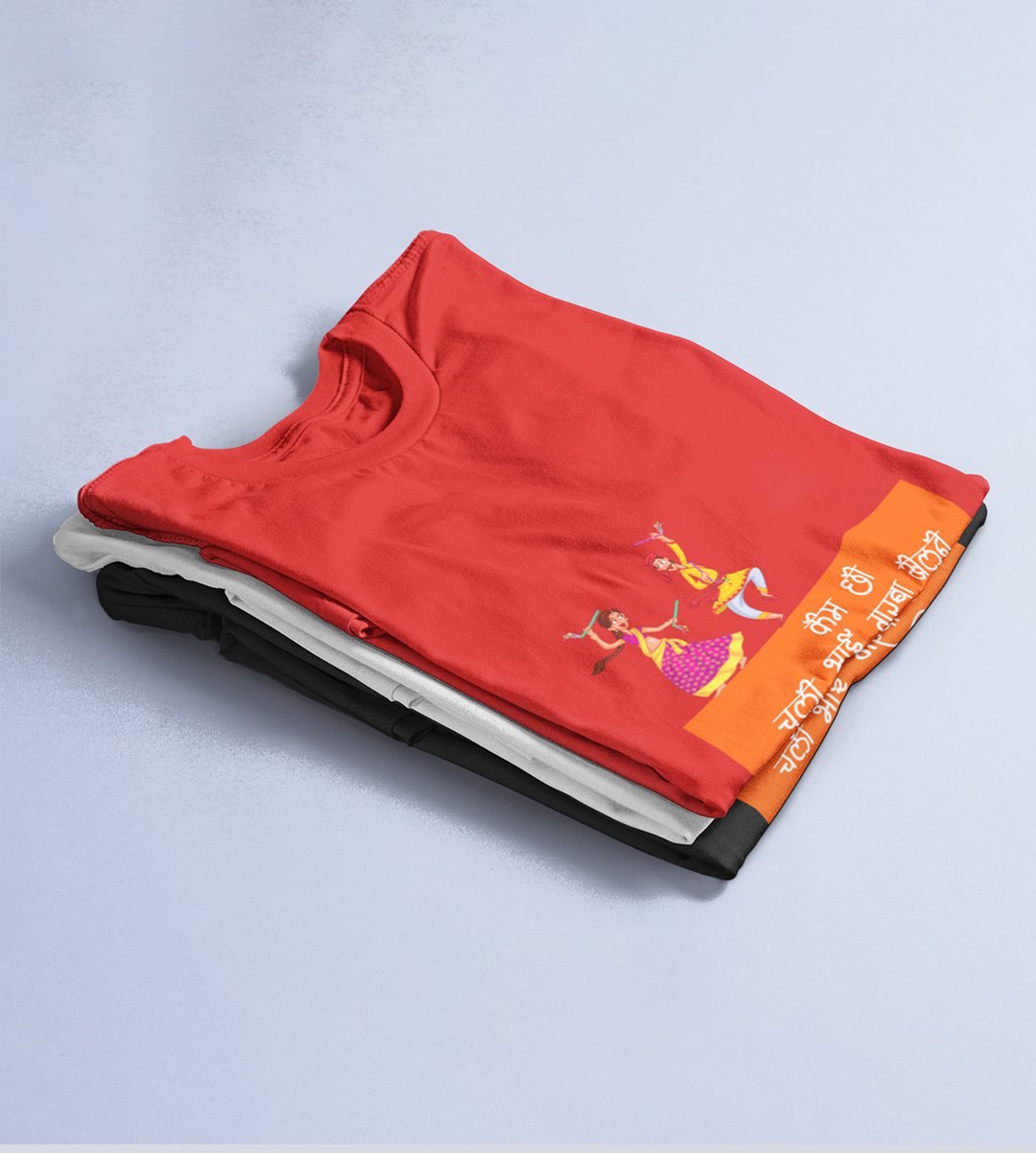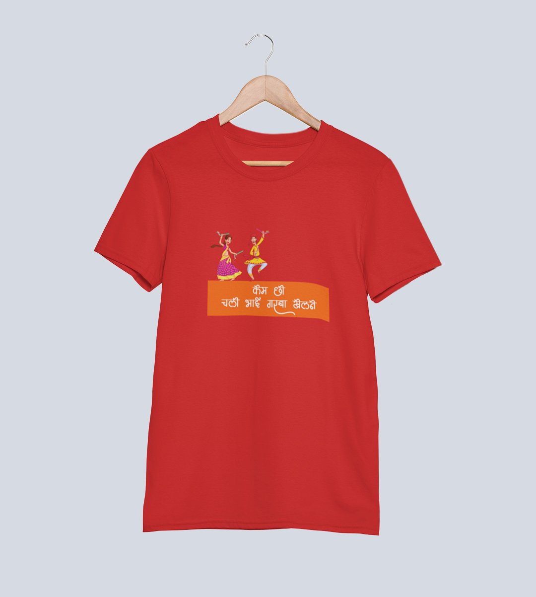Couple dance printed unisex adults round neck cotton half-sleeve red tshirt specially for Navratri festival/ Durga puja
