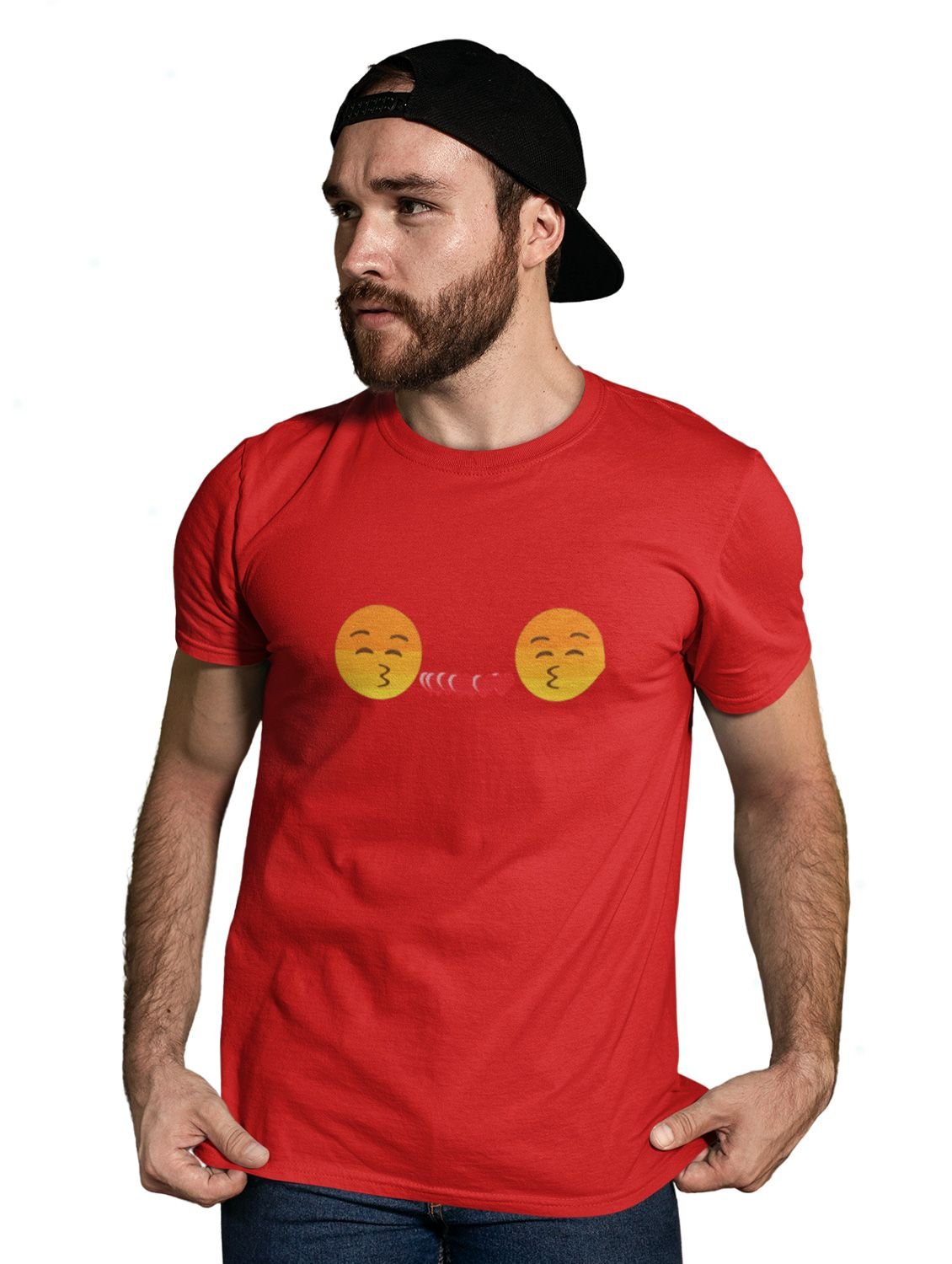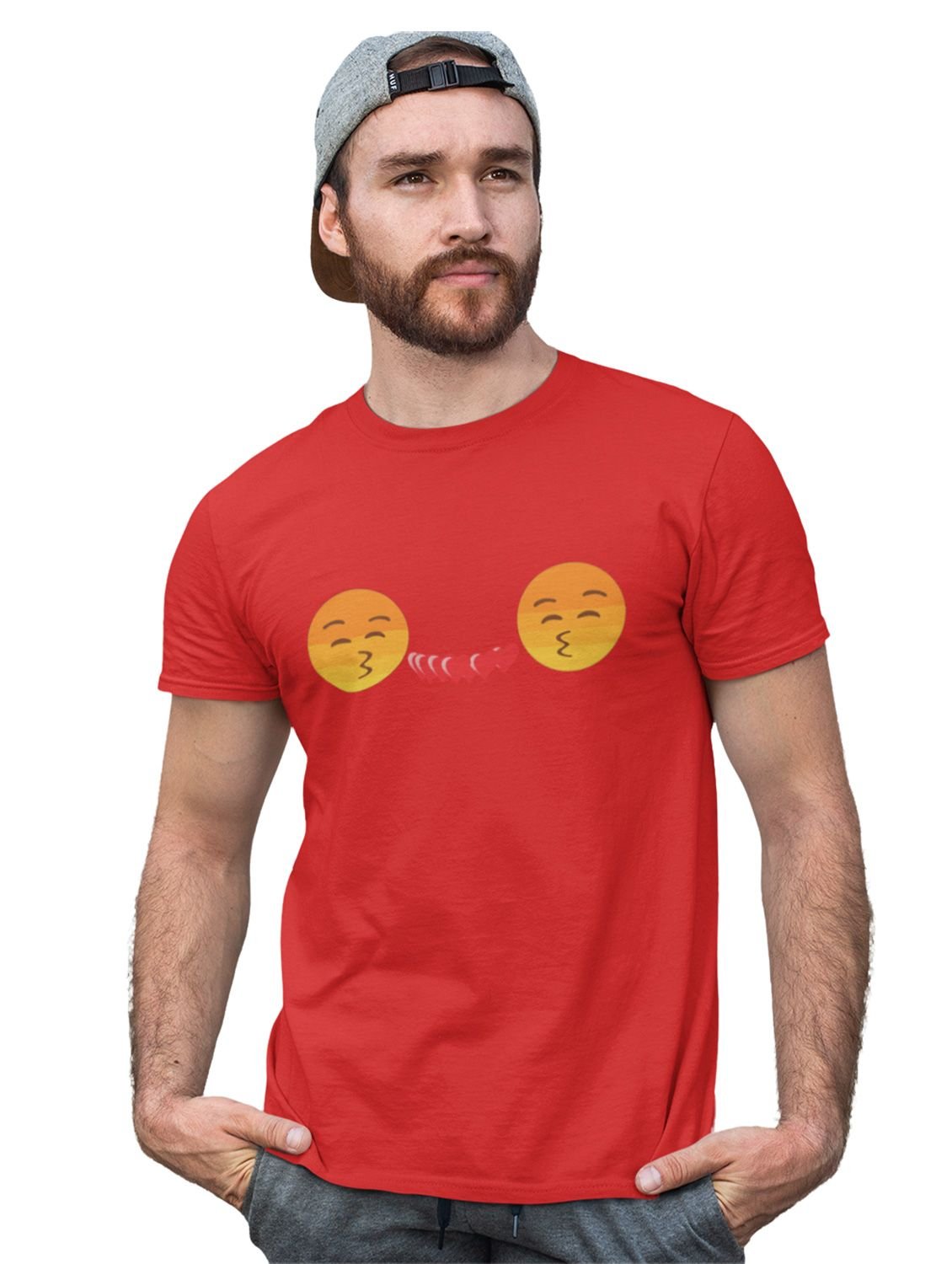Couples Showing Flying Kiss Emoji T-shirt (Red) - Clothes for Emoji Lovers - Foremost Gifting Material for Your Friends and Close Ones