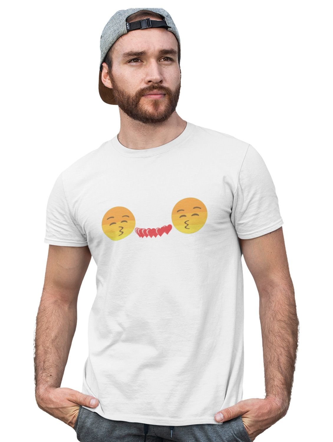 Couples Showing Flying Kiss Emoji T-shirt (White) - Clothes for Emoji Lovers -Foremost Gifting Material for Your Friends and Close Ones