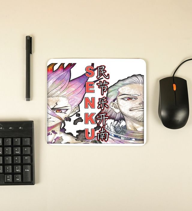 Unleash the power of science and creativity with this vibrant anime-style printed mousepad. Featuring a bold cutout design that reveals a lineup of dynamic characters set against a bright, clean background, this piece is perfect for fans of adventure, innovation, and post-apocalyptic storytelling
