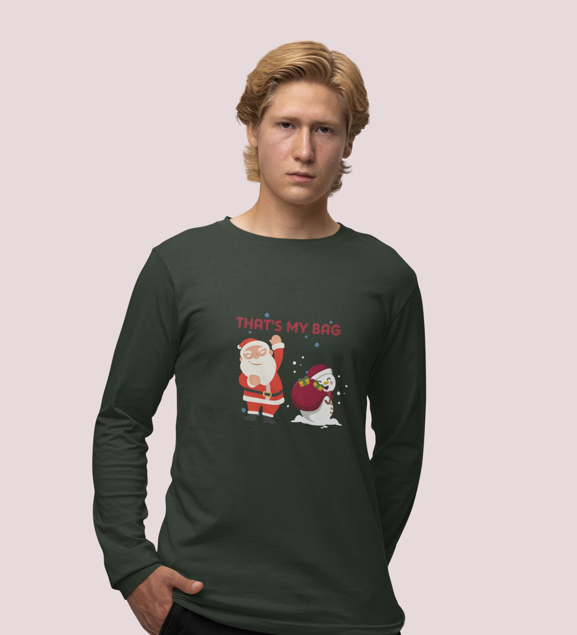 Cranky Little Santa: Funny DesignerFull Sleeve T-shirt Green Best Gift For Boys Girls
