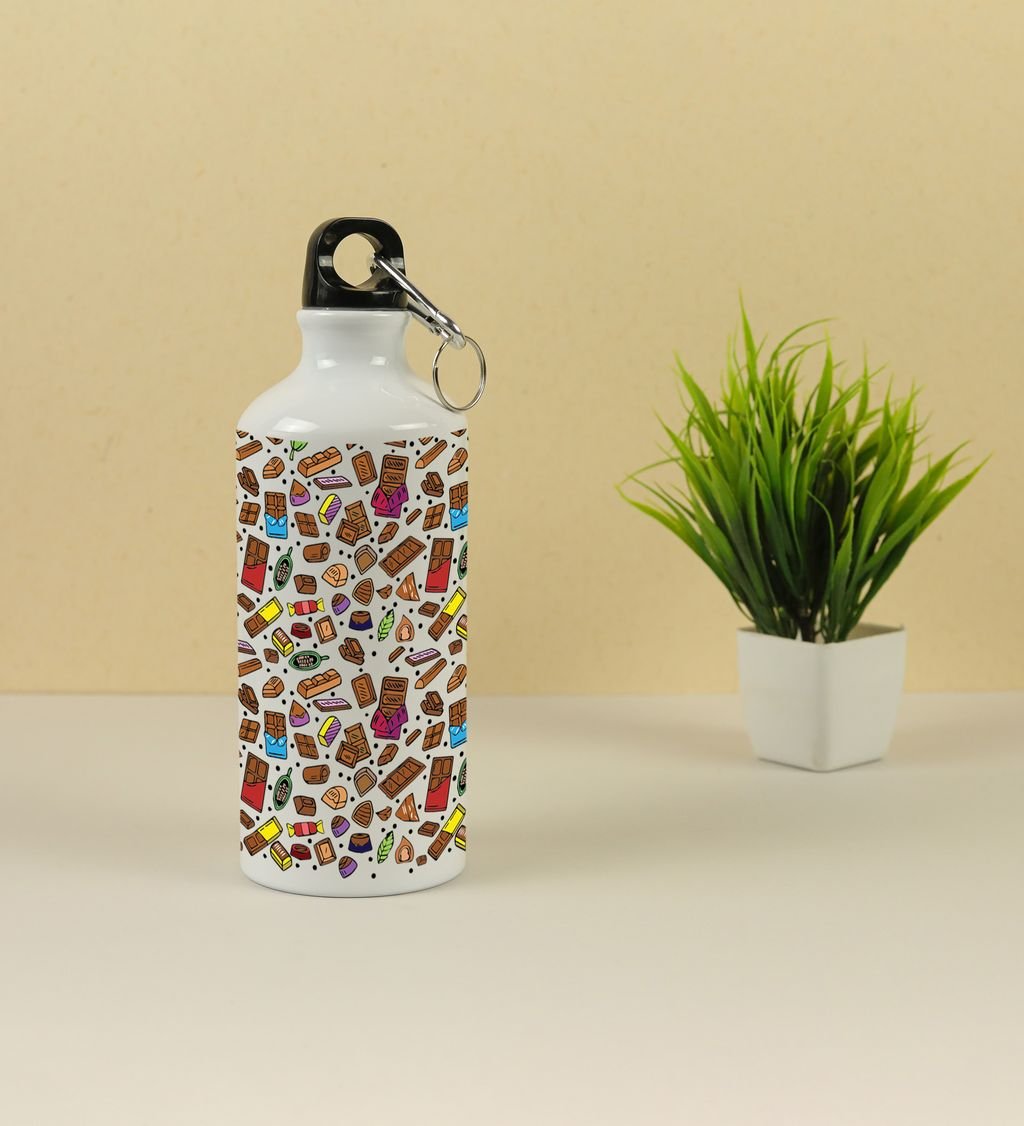 Craving Fun? Enjoy Sweets and Chocolates Doodles on Aluminium Water Bottle 600ml