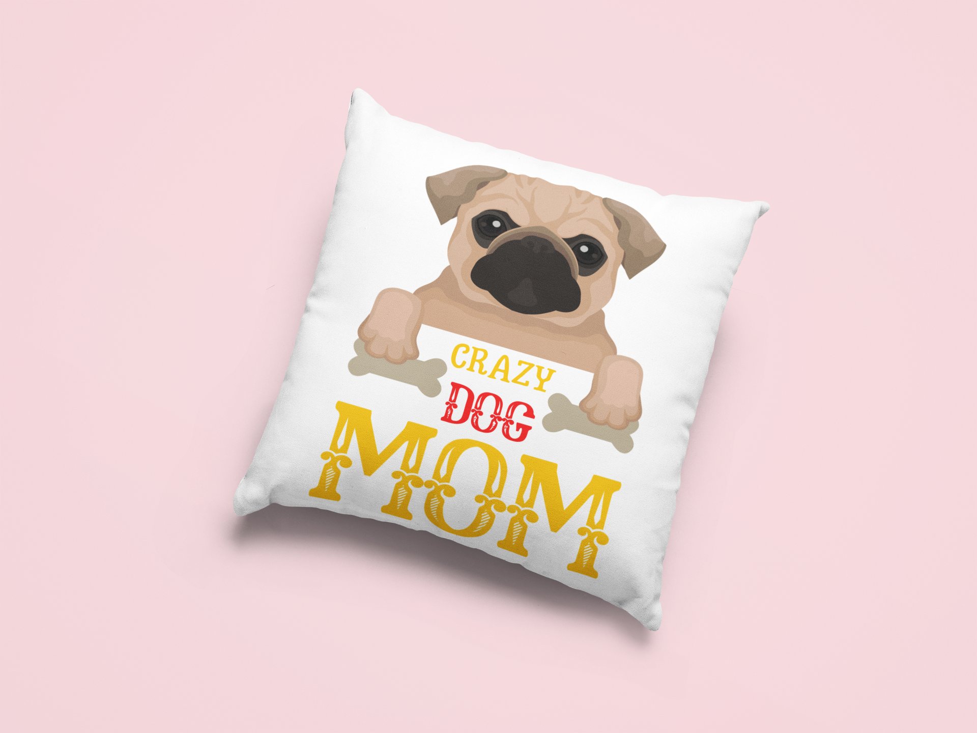 Crazy dog mom-Printed Pillow Covers For Pet Lovers(Pack Of Two)