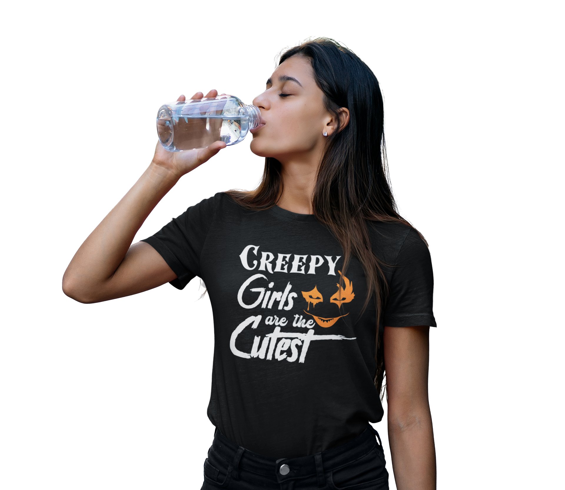 Creepy girls, Halloween text illustration graphic - Printed Tees for Women's -designed for Halloween