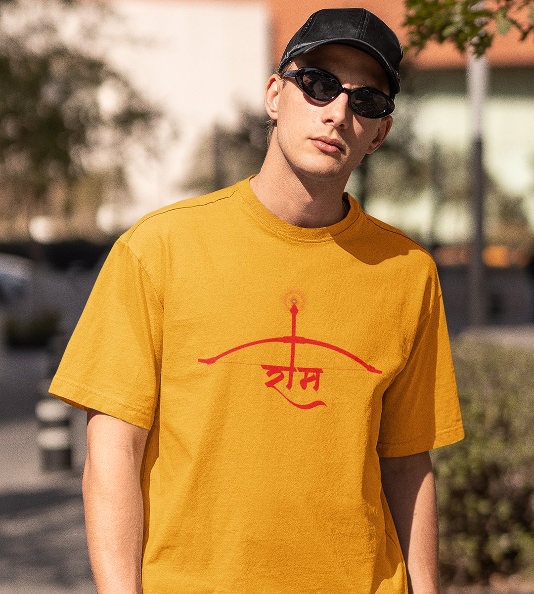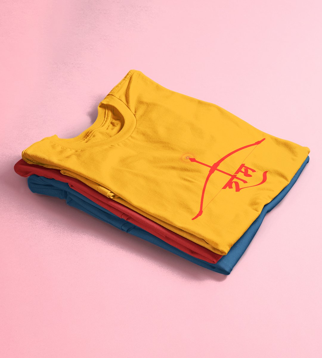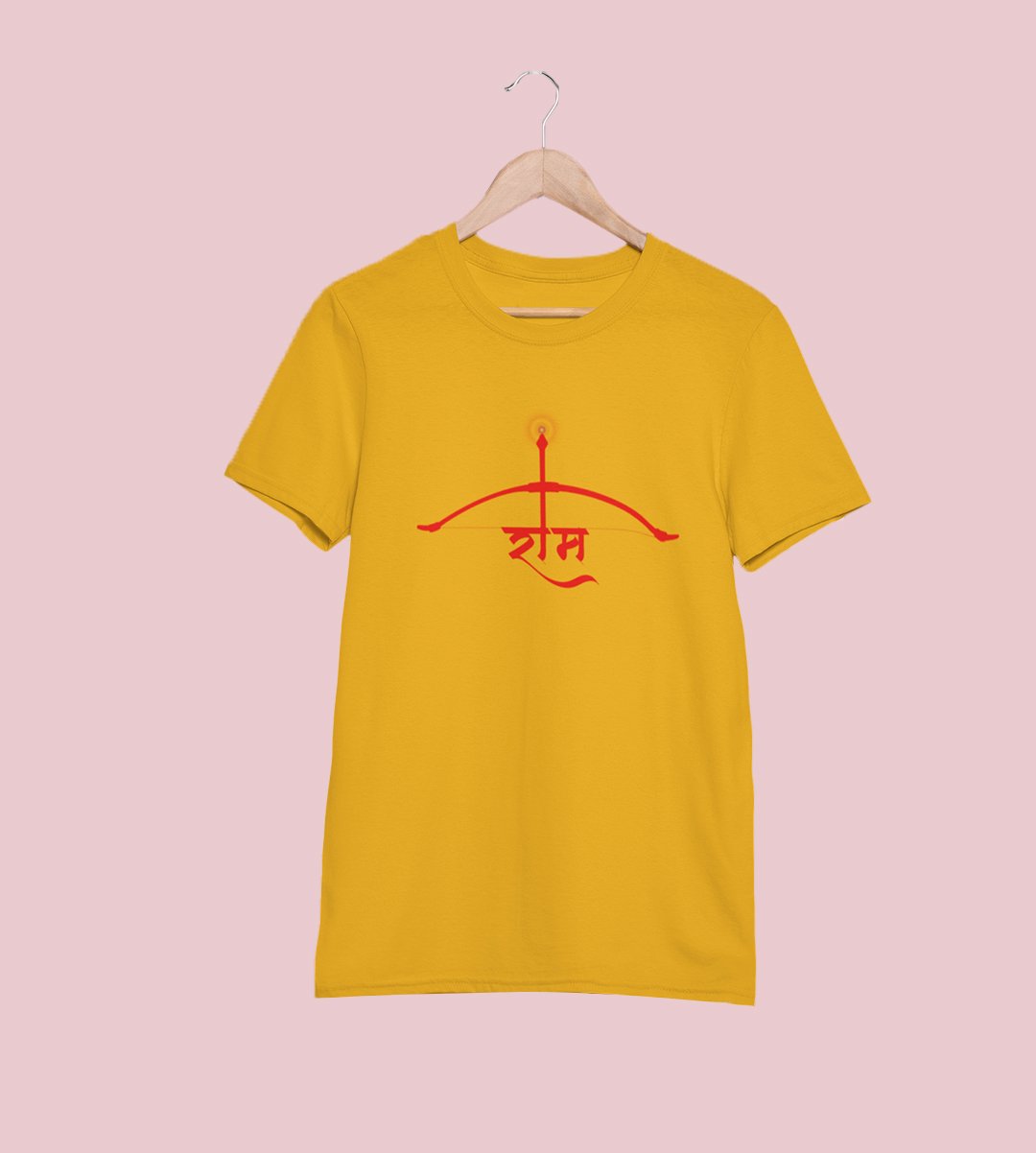 Crossbow printed unisex adults round neck cotton half-sleeve yellow tshirt specially for Navratri festival/ Durga puja