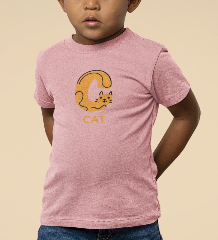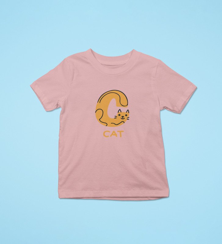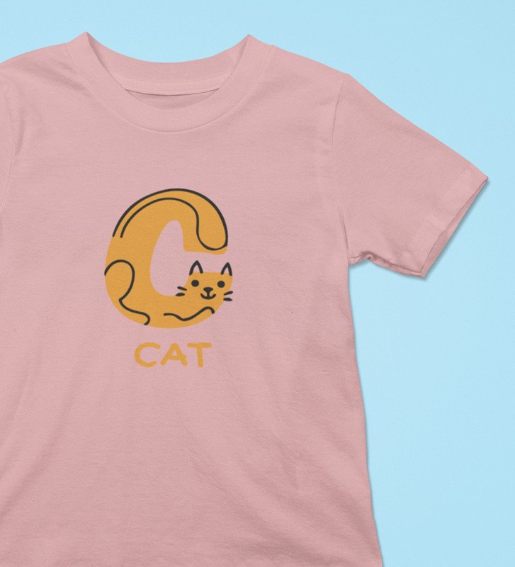 Cute cat, Boys Cotton Text Print Tshirt (Baby pink)