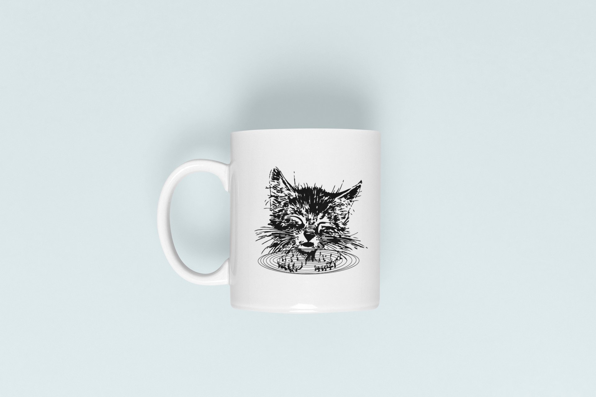 Cute Cat - line art themed printed ceramic white coffee and tea mugs/ cups