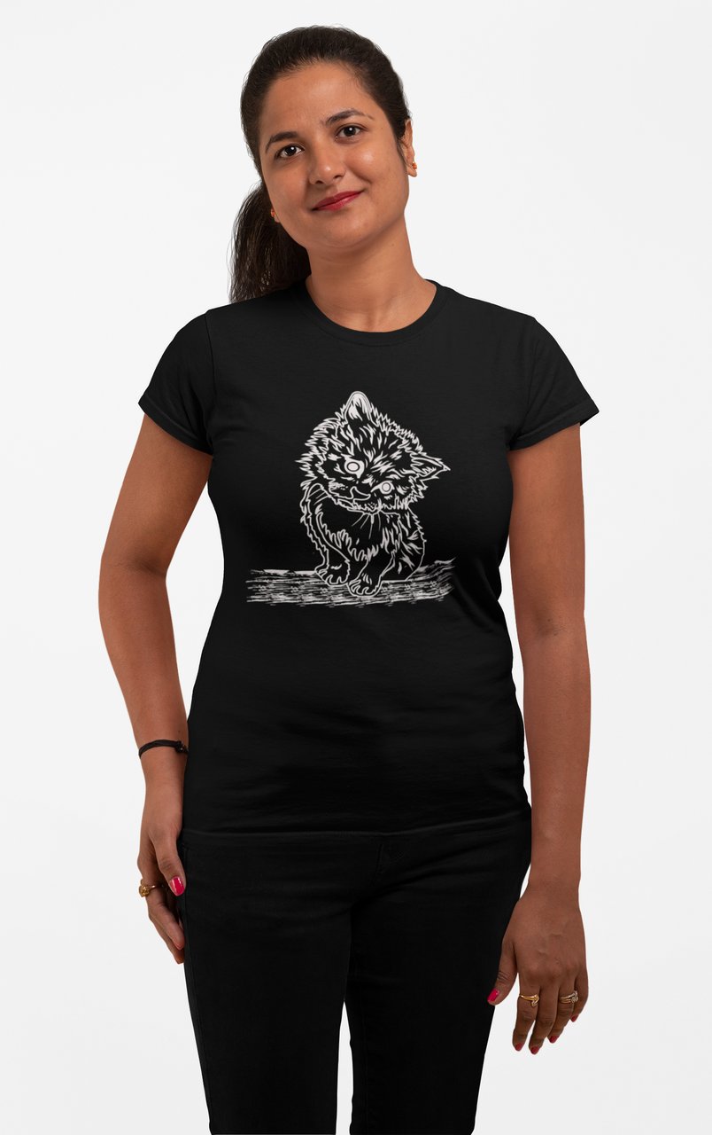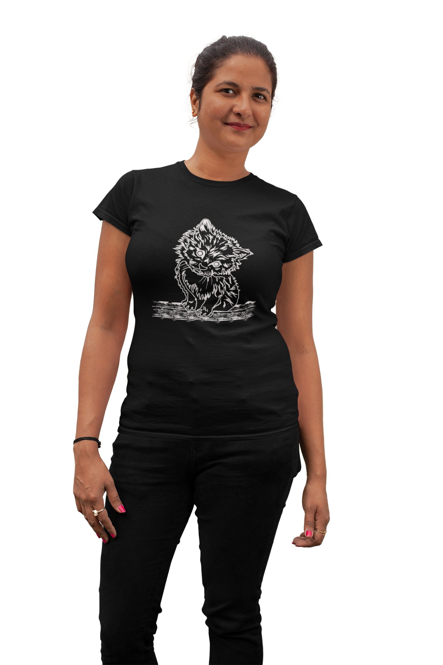 Cute Cat - Line Art for Female - Half Sleeves T-shirt