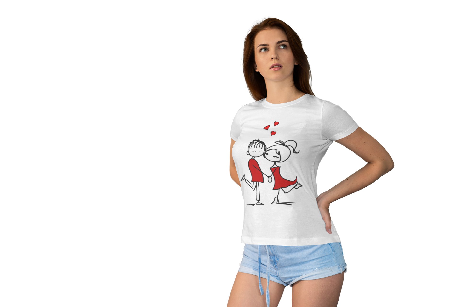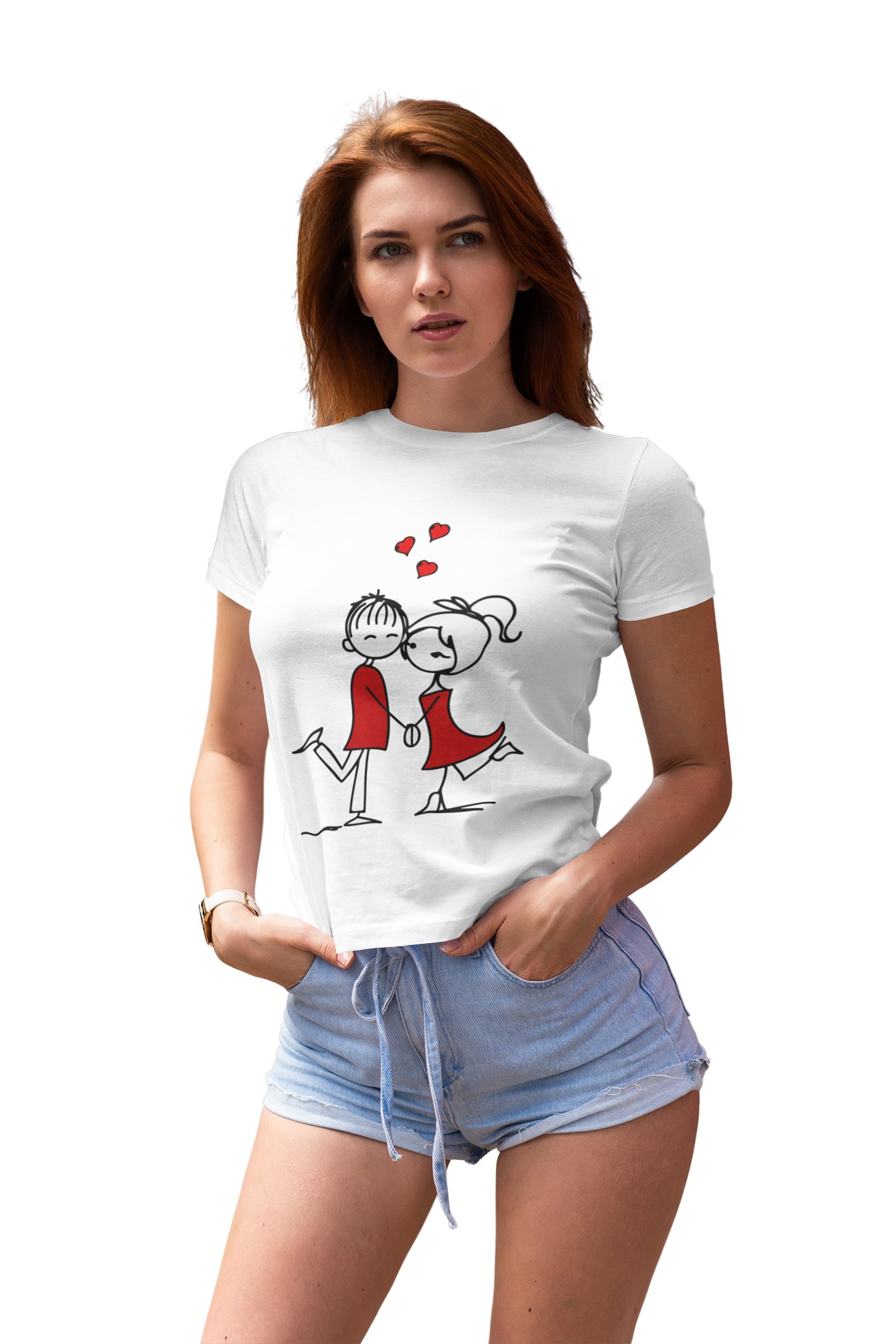 Cute Couple Holding Hands- Cute Little Hearts Romantic Red-Printed T-Shirts