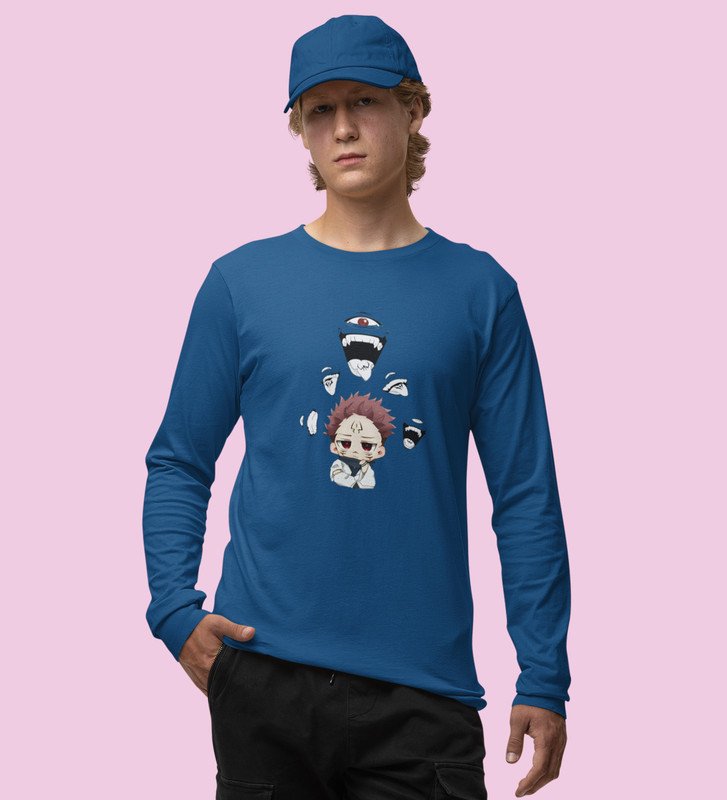 Cute Itadori Printed Cotton Blue Full Sleeves Tshirt For Mens and Boys