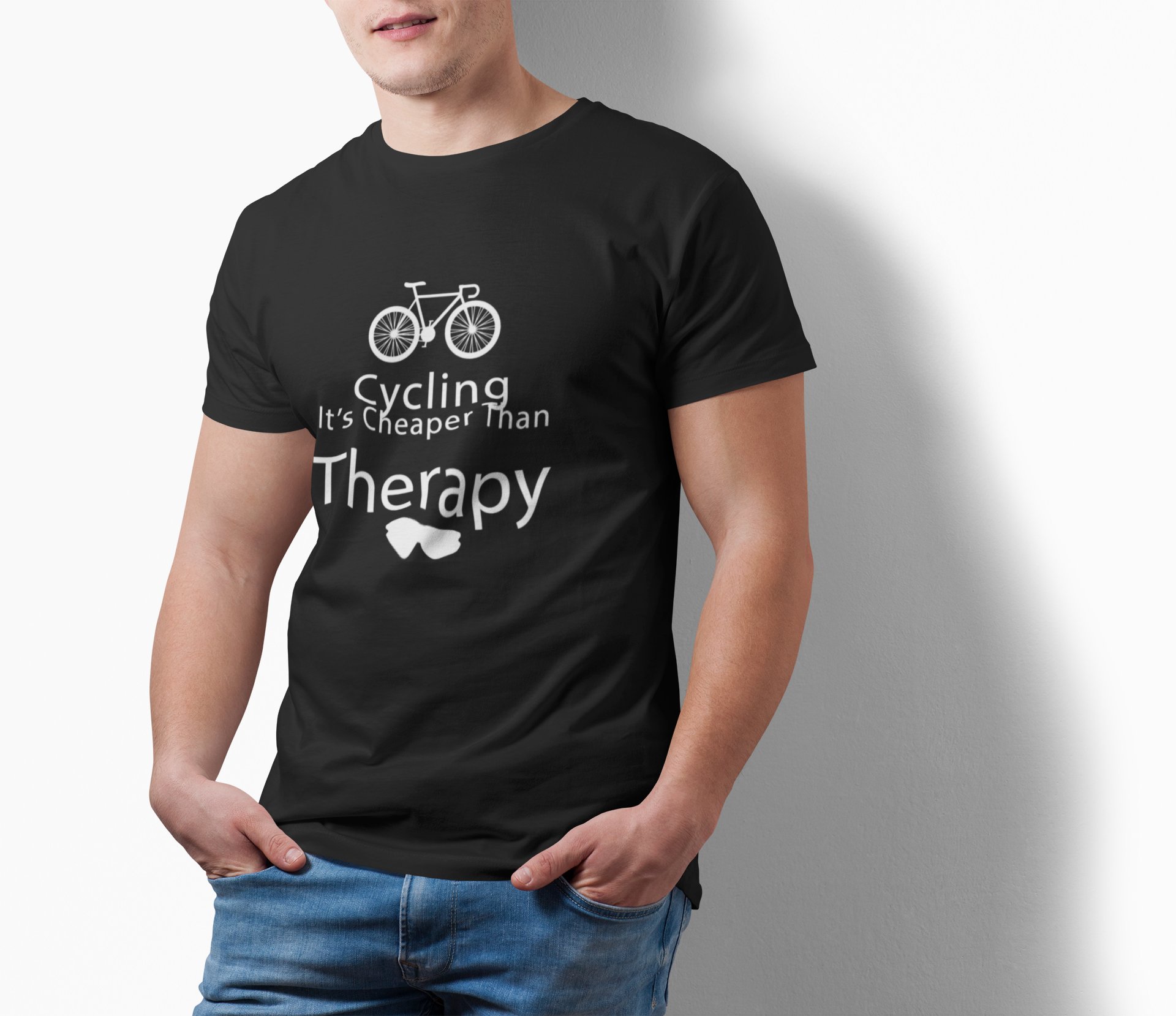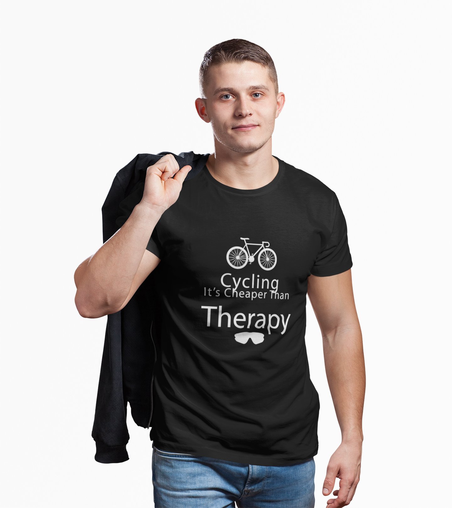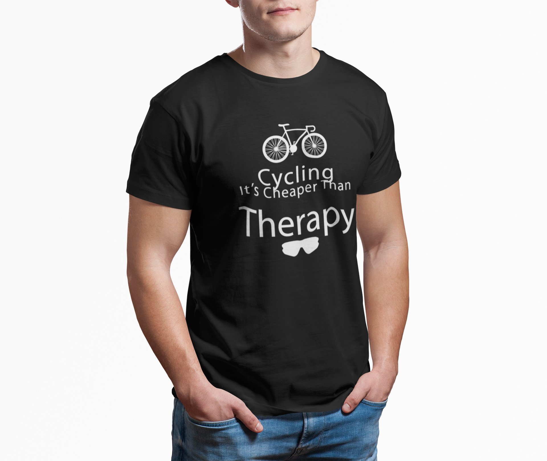 Cycling, its cheaper than therapy -round crew neck cotton tshirts for men