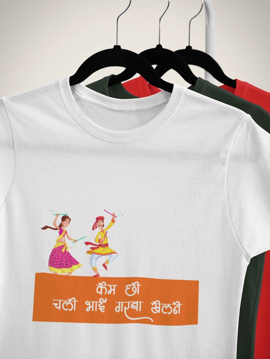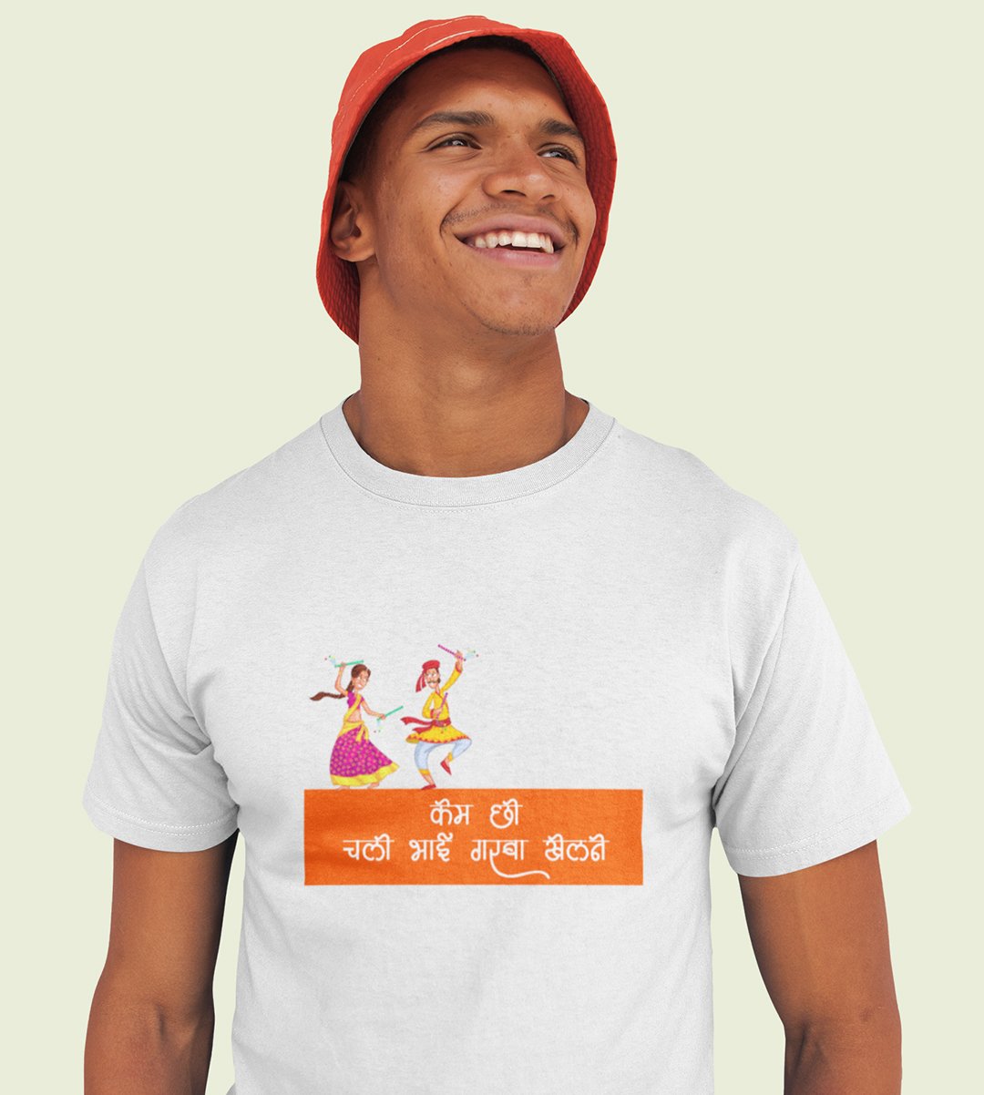 Navratri is a very auspicious festival for hindus. It takes place at the beginning of October and sometimes September. Enjoy the 9 days of festivities with full zeal and make yourself submerged in the love of Maa Durga. Navratri is also known as Durga Puja. And with this Tees, you can shine like a star during this festive season with our navratri themed cotton half sleeved Tshirts. You can pair our t-shirts with trousers and denim of your choice and make it a weekday smart casual or weekend wear. This is durable. This tshirt is smooth and soft which makes you comfortable to wear during all seasons. The printing in it is durable and odourless. It has five sizes, S,M,L,XL,XXL. The Tshirt colour is intact even after repeated washes. It can be kept in your wardrobe and hangers. Please avoid washing mashine to clean this Tee, it may affect the print. Hand wash only. We have brought you many navratri related designs printed on our different colour Tshirts to choose from. Grab it now.