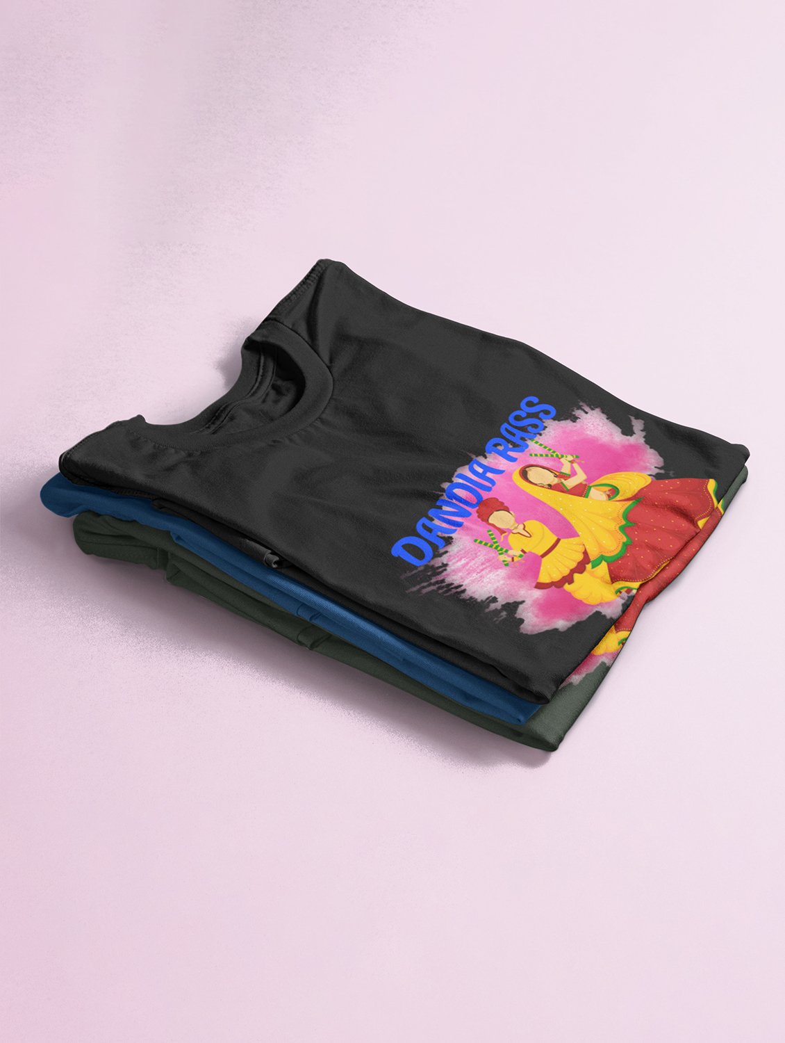 Dandiya rass printed unisex adults round neck cotton half-sleeve black tshirt specially for Navratri festival/ Durga puja