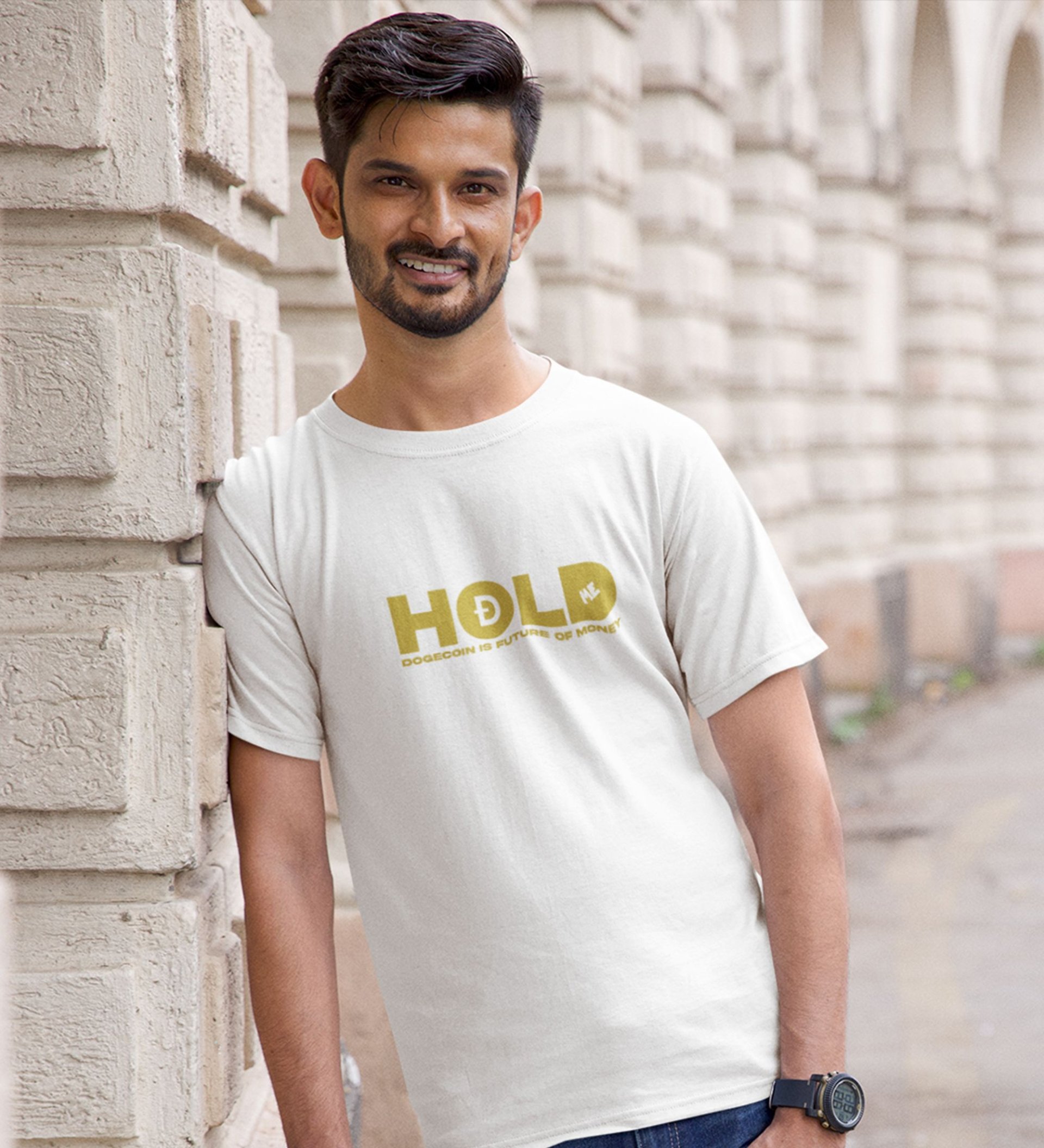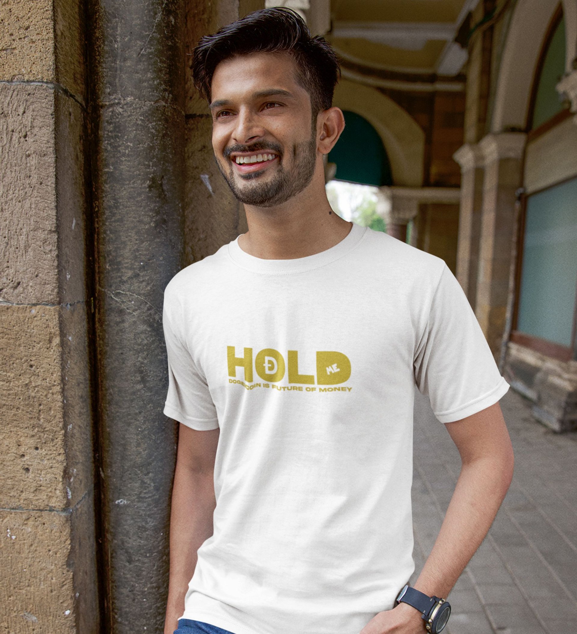 Declaration Of Dogecoin Wings White Round Neck Cotton Half Sleeved Men's T Shirt with Printed Graphics