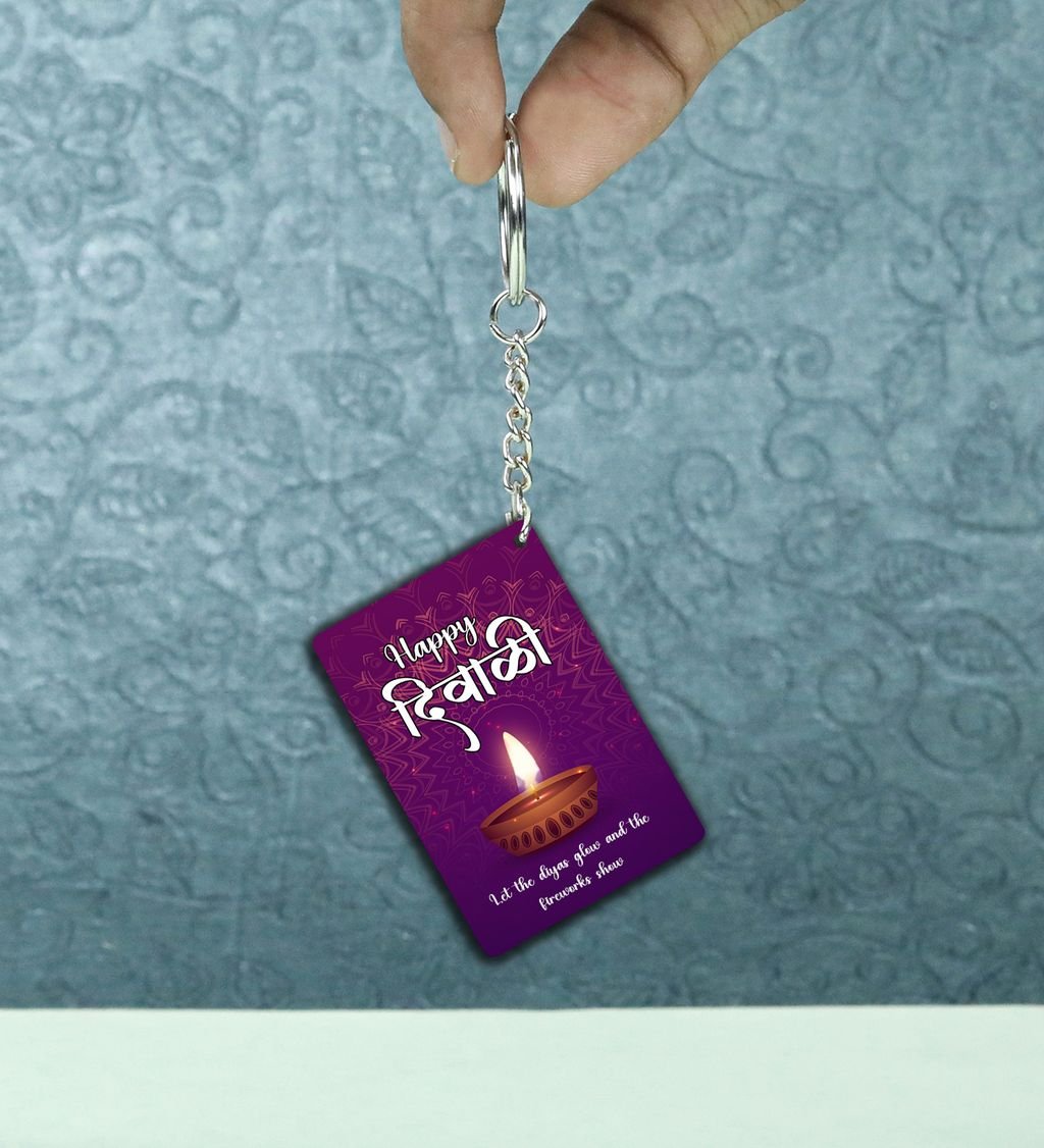 Celebrate the spirit of Deep Utsav with this vibrant rectangular keychain, inspired by the radiant glow of Diwali lamps. Featuring festive colors and intricate patterns, it adds a touch of joy and tradition to your everyday carry. Lightweight and durable, it's perfect for gifting or keeping the festive vibes close all year round. Carry a piece of the festival of lights wherever you go.