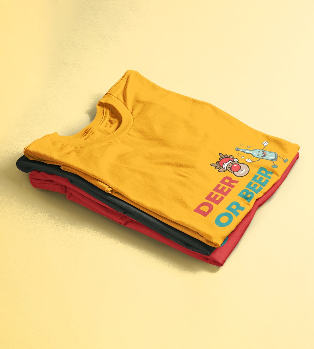 Deer Or Beer: Beautifully Crafted T-shirts(Yellow) Best Gift for Boys Girls