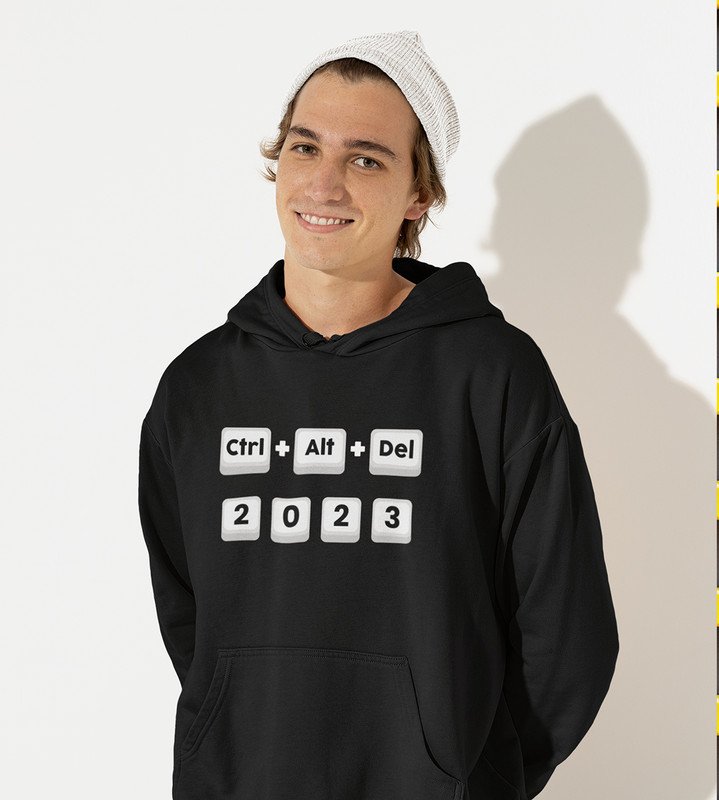 Delete 2023, Black New Year Printed Hoodies For Mens
