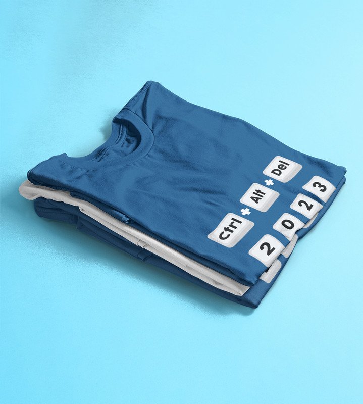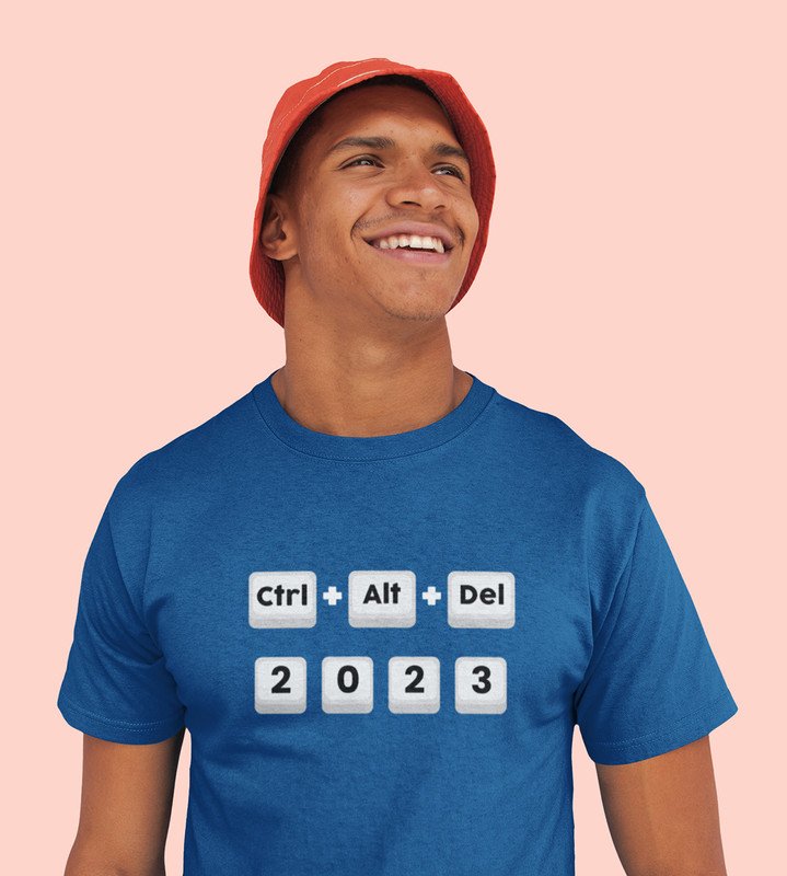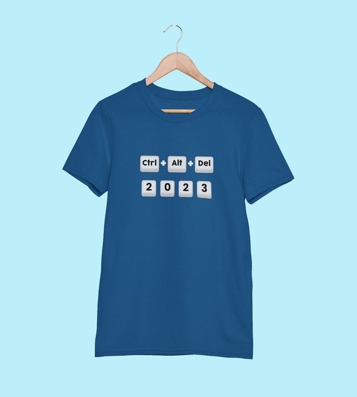 Delete 2023 Blue New Year Printed T-shirt For Mens