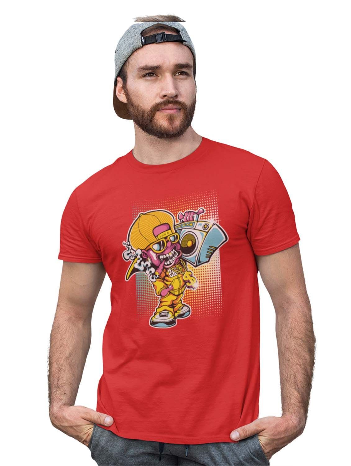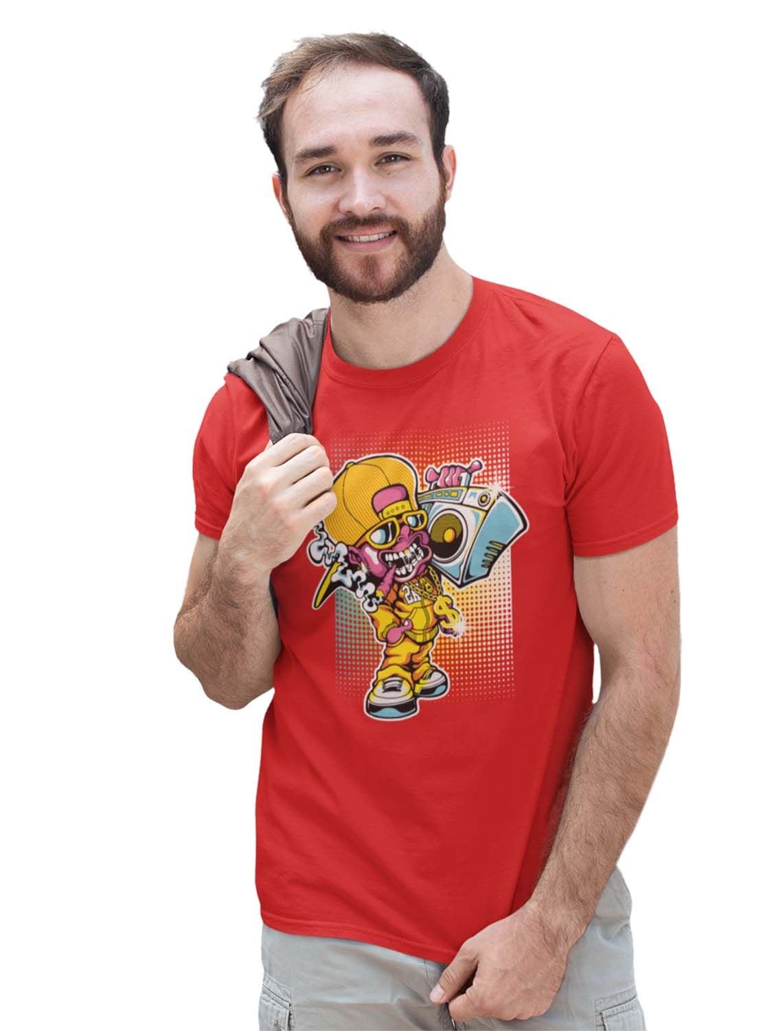 Hip-Hop Drip Red Round Neck Cotton Half Sleeved T-Shirt with Printed Graphics