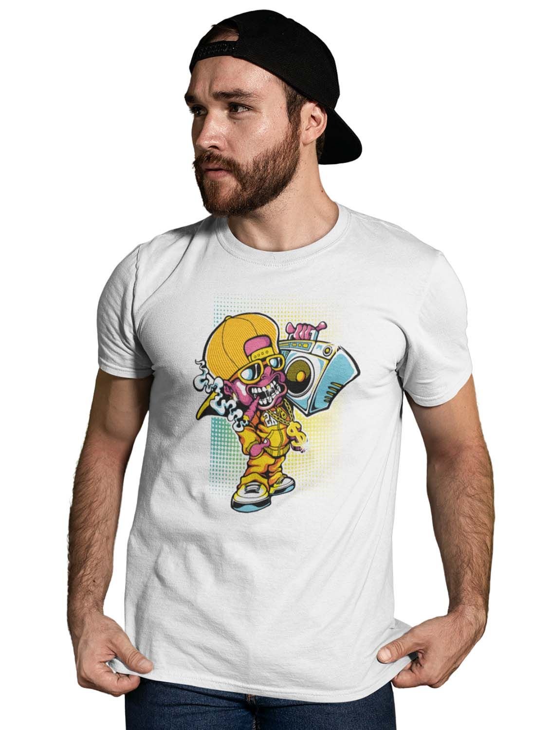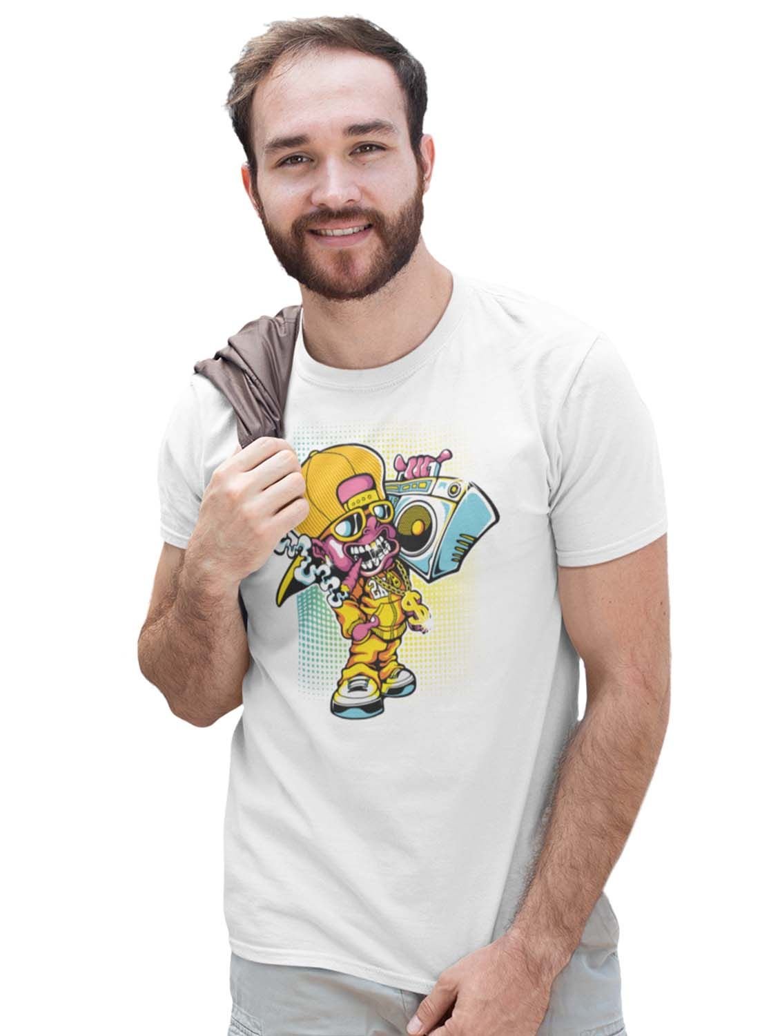 Hip-Hop Drip White Round Neck Cotton Half Sleeved T-Shirt with Printed Graphics